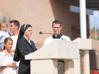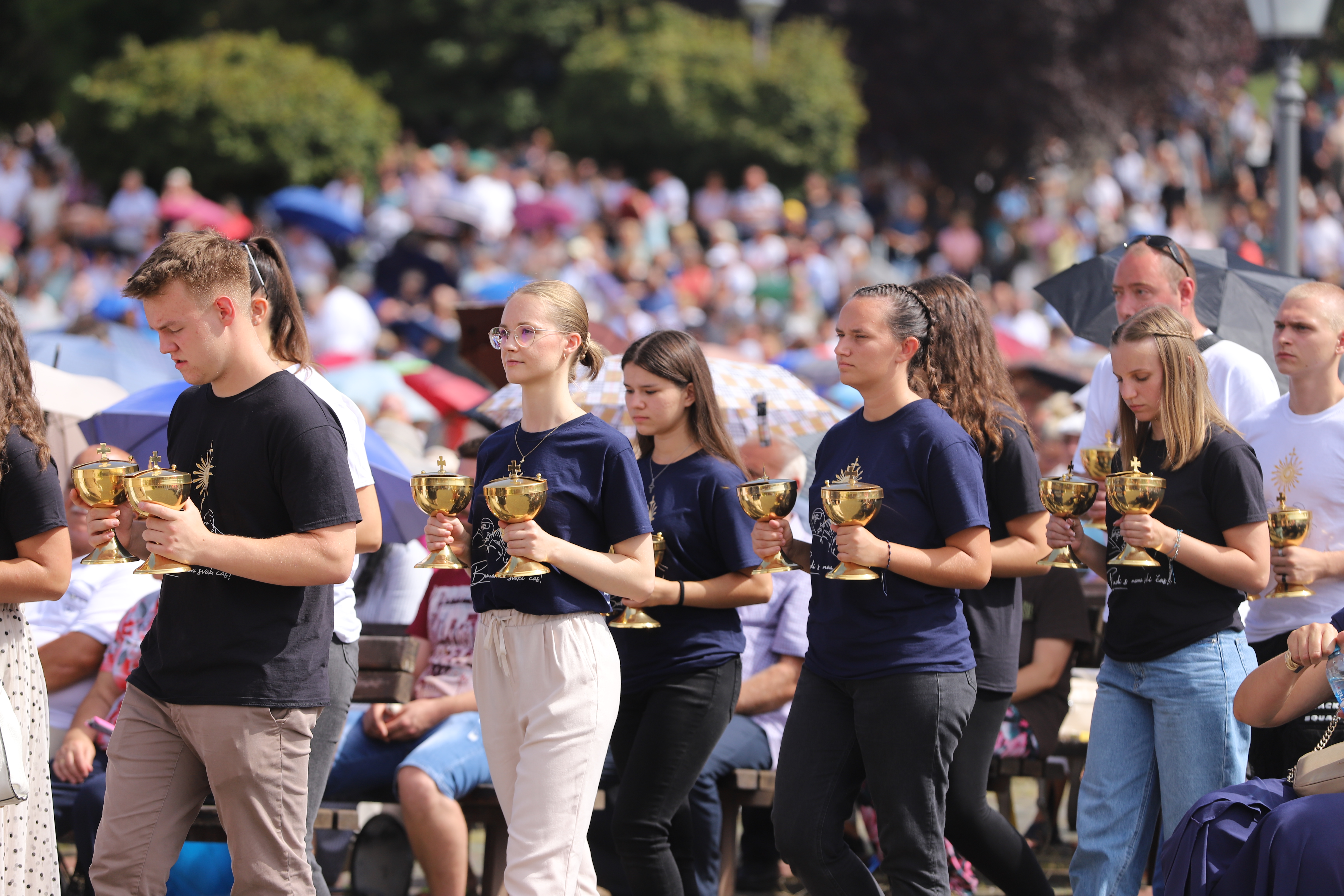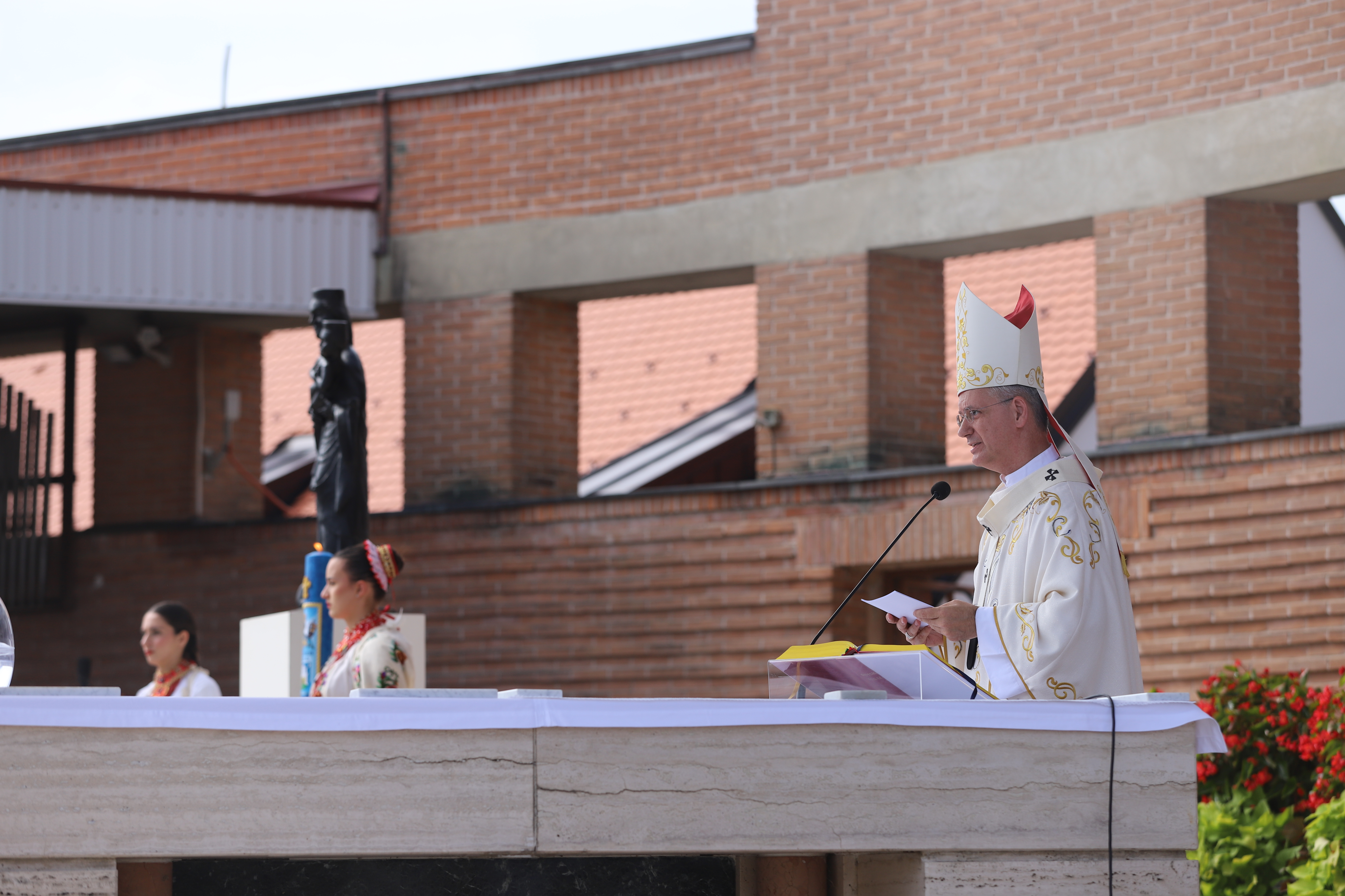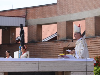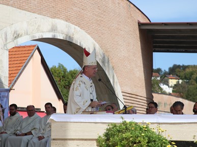 Nadbiskup Kutleša uvodeći u euharistijsko slavlje rekao je kako „mi danas ovdje donosimo svoje probleme, poteškoće i probleme nebeskoj Majci, a ona želi da mi u svijetu svjedočimo za njezinog Sina. Naša nas majka poziva da budemo hrabri pokazivati svoju vjeru, svjedočiti i pokazivati što znači biti pravi katolik.“