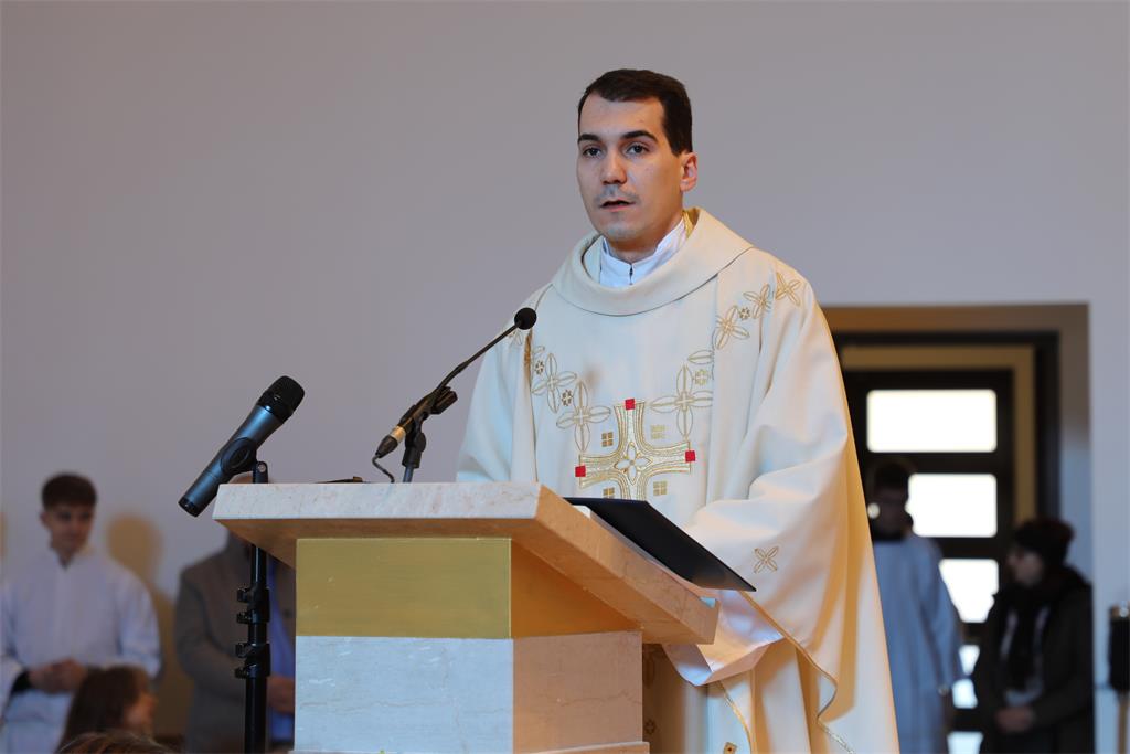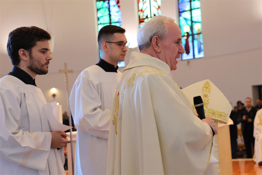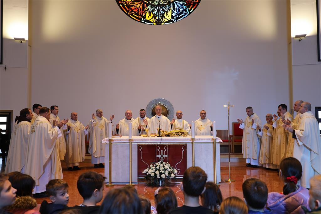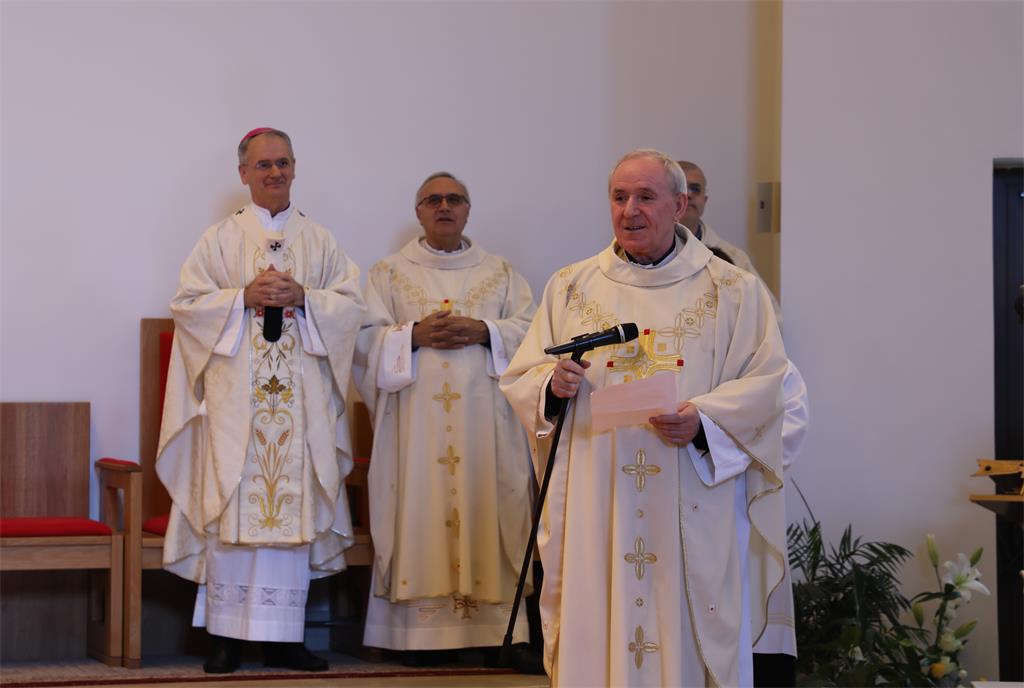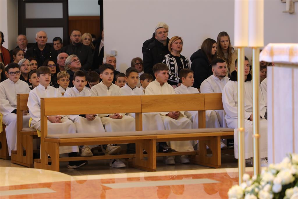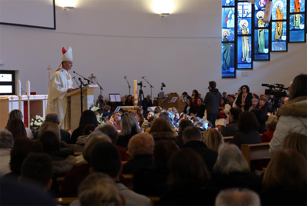 Prije početka misnog slavlja dvojica dječaka pozdravila su nadbiskupa Kutlešu i župnika vlč. Kristu Brkića, kojem su tom prigodom i čestitali imendan, a zatim je župnik pozdravio nadbiskupa i okupljene vjernike te podsjetio na najvažnije događaje iz povijesti Župe sv. Ivana XXIII., pape.