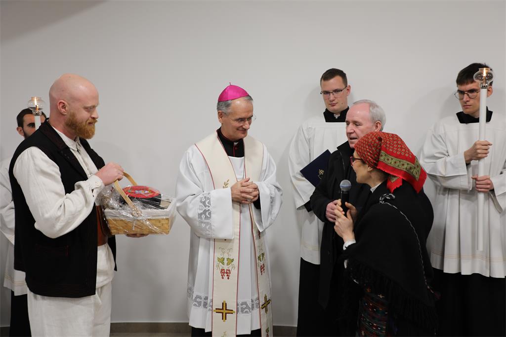 Na kraju mise župnik vlč. Brkić nadbiskupu je u ime župne zajednice poklonio prsten s likom sv. Ivana XXIII. te mitru na kojoj se nalaze prikazi detalja s liturgijske odjeće koju je nosio bl. Alojzije Stepinac.