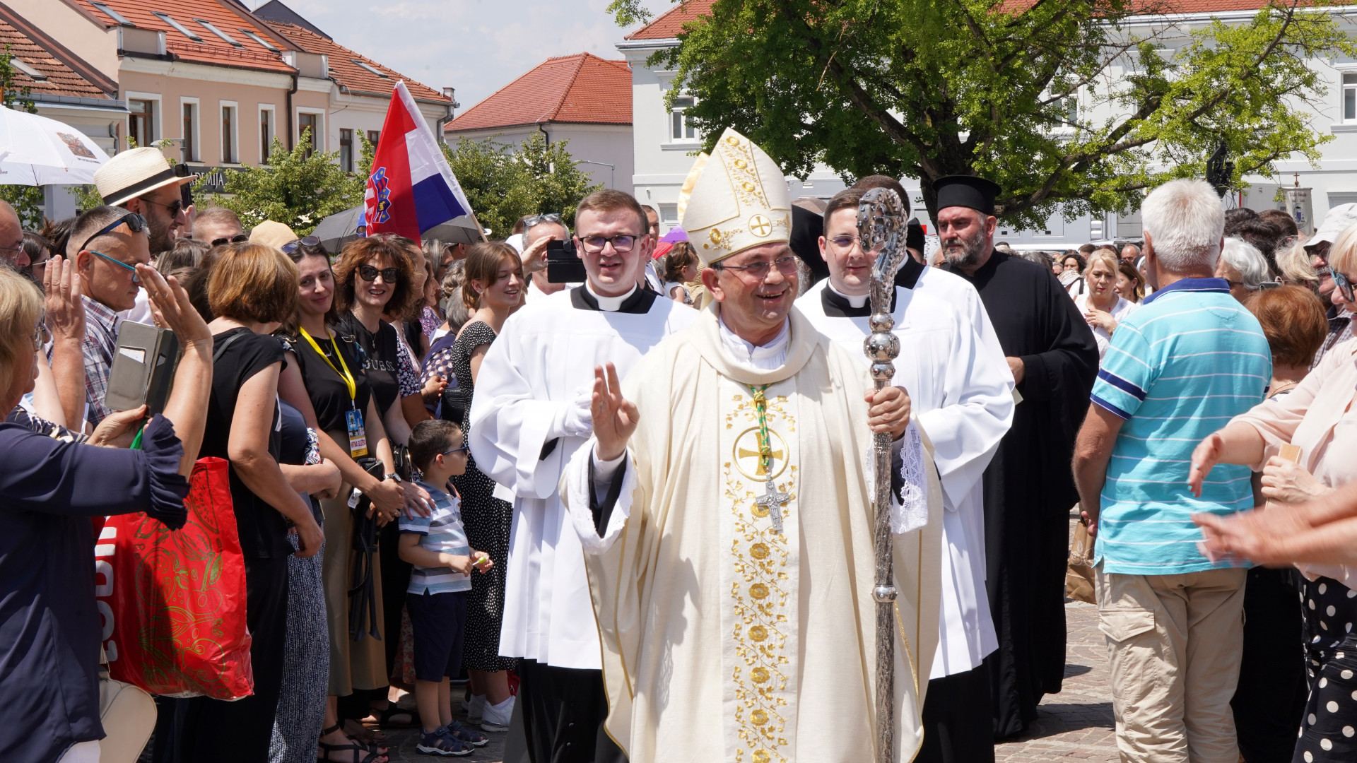 Nakon upućenih čestitki, biskup Martinović prošao je katedralom blagoslivljajući okupljeni narod. Potom je uputio svoj
