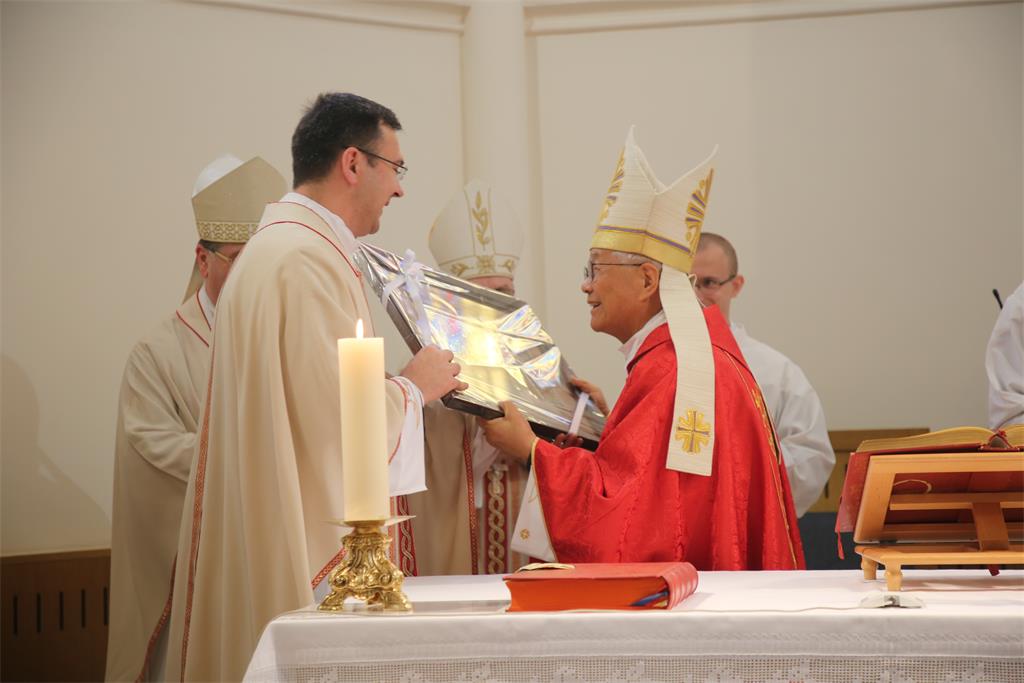 Pri završetku euharistijskog slavlja preč. Faltak poklonio je u ime bogoslovske zajednice sliku vitraja Srca Isusova, Blažene Djevice Marije i svetoga Josipa koja krase bogoslovsku kapelu.