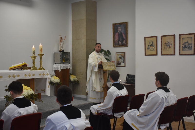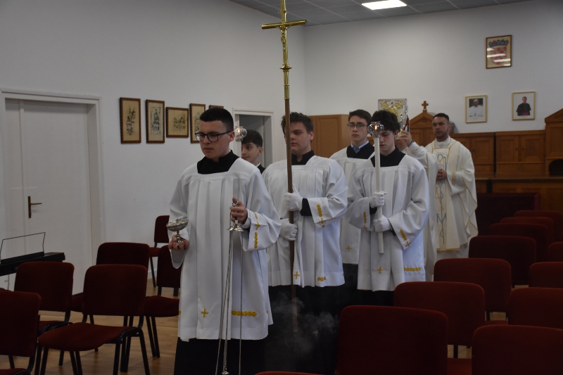 Svečarski dan u Sjemeništu započeo je jutarnjom molitvom časoslova naroda Božjega, a zaključen je večernjim misnim slavljem koje je predslavio vlč. Petar Belina u zajedništvu s rektorom sjemeništa preč. Matijom Pavlakovićem, dok je sjemenišni duhovnik vlč. Luka Premelč bio na raspolaganju sjemeništarcima za sakrament pomirenja.