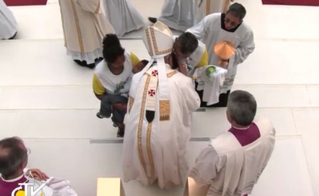 U nedjelju, 28. srpnja na završnoj Misi Svjetskog dana mladih na Copacabani u Rio de Janeiru u prinosu darova sudjelovao je jedan bračni par koji je Papi donio svoje teško bolesno novorođenče, djevojčicu rođenu bez mozga.
