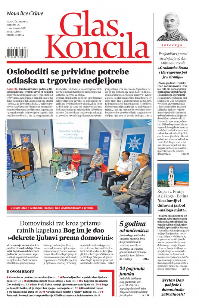 Naslovna fotografija prikazuje sudionike okrugloga stola koji je na Hrvatskom katoličkom sveučilištu okupio teologe, sindikaliste, političare i predstavnike sektora trgovine, koji su raspravljali o neradnoj nedjelji poglavito kao civilizacijskom pitanju, o tekovini koju je kršćanstvo podarilo velikom dijelu čovječanstva. Izvještaj s okruglog stola prati naslovnu fotografiju te se nastavlja na čitavoj drugoj stranici tjednika.