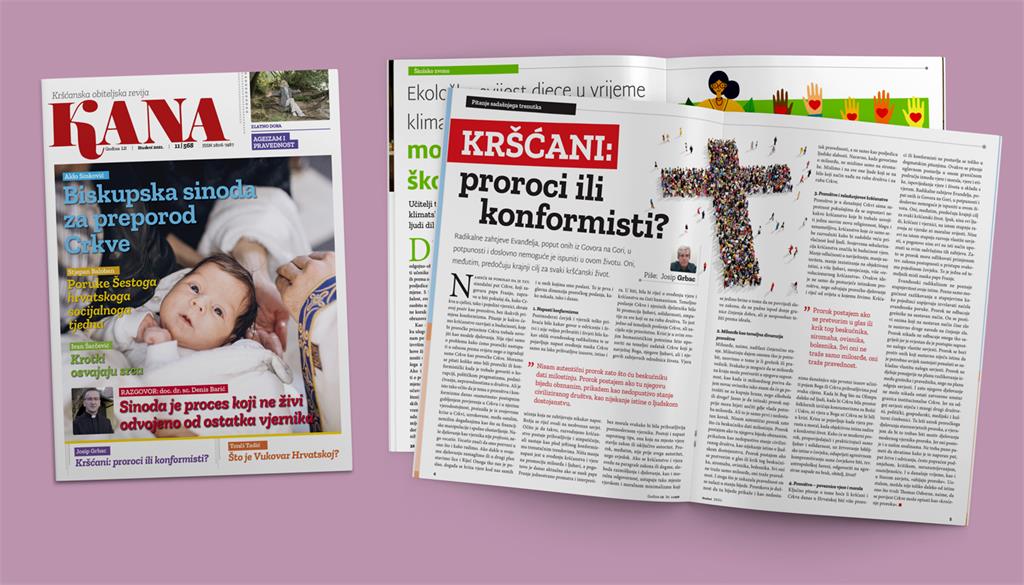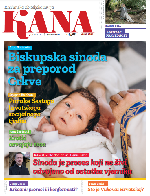 Kana. “Svi smo pozvani krenuti sinodalnim putem, odnosno biti u aktivnom zajedničkom hodu i evangelizacijskom poslanju kao članovi crkvene zajednice te smo kao takvi pozvani ugrađivati evanđeoske vrednote u društvo i u svijet. Ostaje nam poželjeti da ovo zajedništvo, sudjelovanje i poslanje ne ostanu zatvoreni u urede, dvorane i dokumente”, istaknula je na prvim stranicama Kane glavna urednica, Maja Petranović koja je za ovaj broj Kane razgovarala s tajnikom Druge sinode Zagrebačke nadbiskupije, doc. dr. sc. Denisom Barićem. U iscrpnom intervjuu govorio je o tome što je sinoda, kako funkcionira, što papa Franjo želi potaknuti, kamo sinodalnost može odvesti Crkvu i koliko će biti prihvaćena u nas u kontekstu promjene mentaliteta na koji smo pozvani, koja je specifičnost Zagrebačke… U rubrici Aktualno Aldo Sinković također je pisao o Biskupskoj sinodi, ističući po čemu će ona biti posebna. Sinodalnost u Novom zavjetu tema je kojom se u ovom broju bavi fra Darko Tepert, a Josip Grbac, na tragu sinodalnosti, propituje današnje kršćane pitajući se jesmo li proroci ili konformisti.