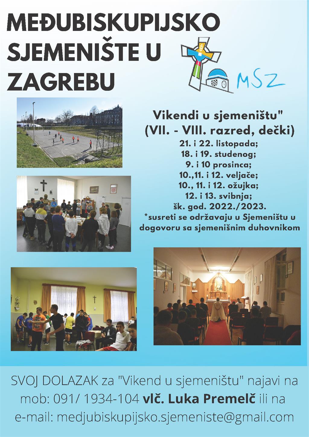 Međubiskupijsko sjemenište u Zagrebu i ove pastoralne godine otvara svoja vrata svim dobnim skupinama, a napose dječacima od 11 do 13 godine života (učenicima VII. i VIII. razreda osnovne škole).