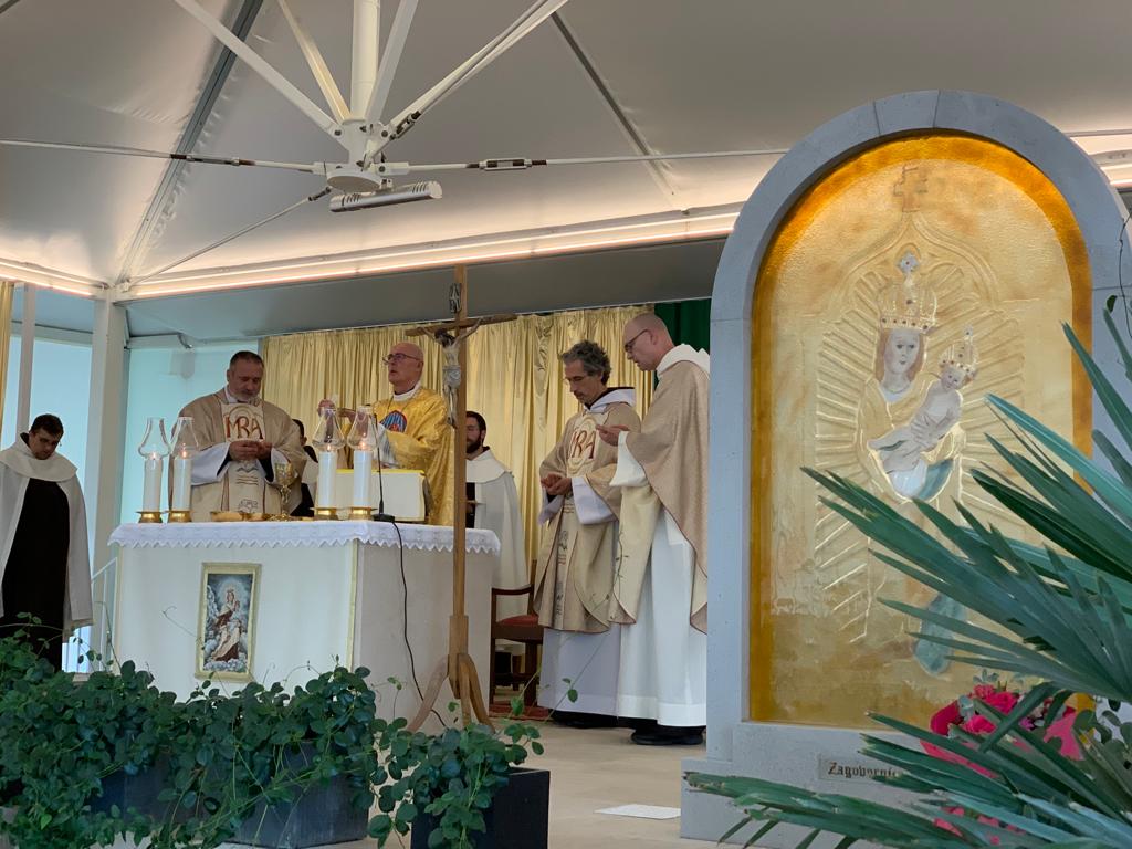 Koncelebrirali su ravnatelj škole o. Vinko Mamić, provincijal Hrvatske karmelske provincije svetog Oca Josipa o. Dario Tokić te župnik i upravitelj Svetišta o. Antonio Mario Čirko.