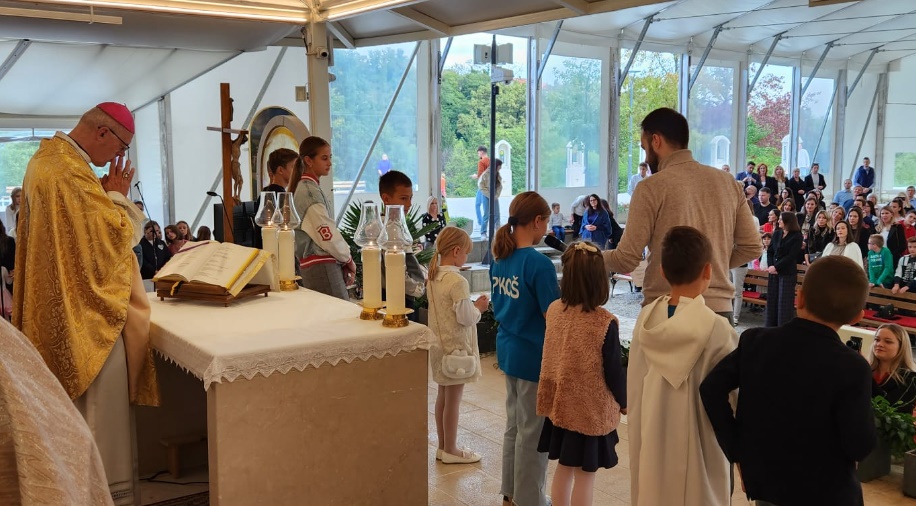 Na početku mise sve okupljene pozdravio je provincijal Tokić rekavši da je s njima „skoro i sam Papa“ te je pojasnio djeci kako je nuncij Lingua izaslanik pape Franje. Kazao je da je mons. Lingua pun poštovanja i razumijevanju prema hrvatskom narodu, pozdravio ga i zamolio da započne euharistijsko slavlje.