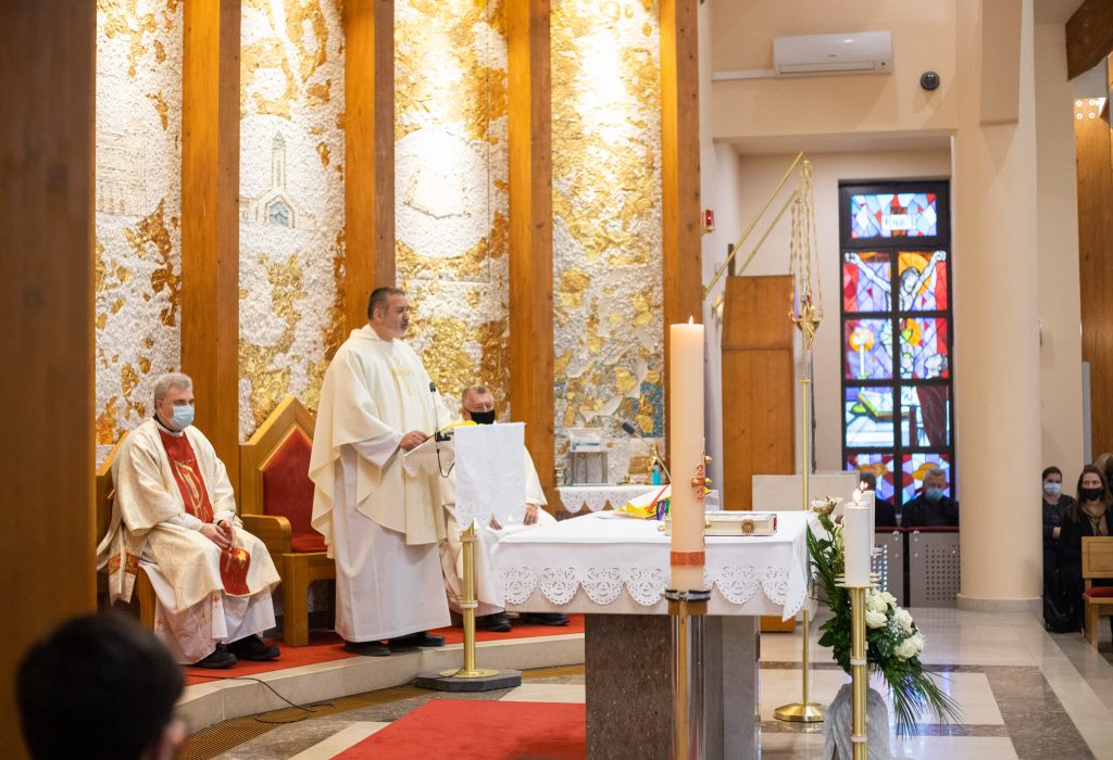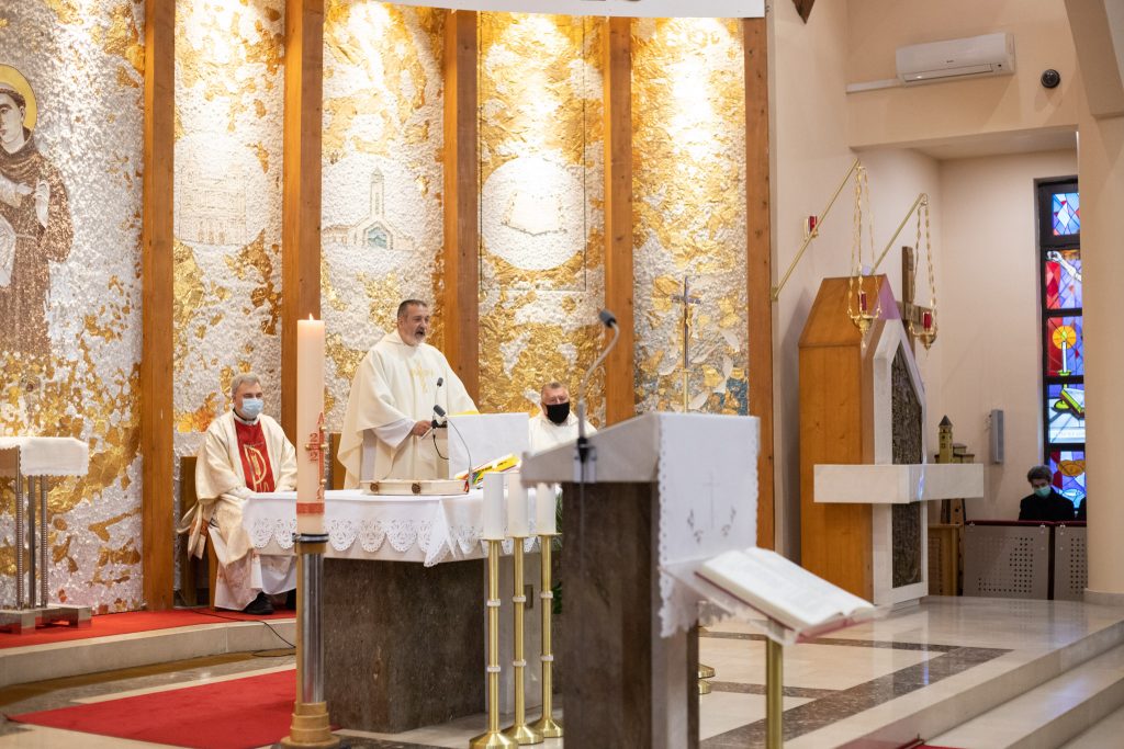 Uvodeći u homiliju o. Dario Tokić rekao je da “Gospodin Isus Krist nije tražio svoje slave kod ljudi, nije tražio da se njemu klanjaju, nego je upućivao na izvor dobrote, na izvor milosrđa, na izvor stvaranja i stvorenja – na Boga Oca. Isus je upućivao na druge, a nije zadržavao ljude na sebi. Ako nismo spremni nešto pretrpjeti zbog onih kojima se obraćamo, onda ne možemo svjedočiti o Bogu jer se ravnamo ne po onome što je Bogu milo, nego se ravnamo po tome što je nama ugodno. Nama je ugodno dijeliti pamet, drugima “soliti”, podučavati i prekoravati druge svisoka, ali nam nije ugodno kada zbog drugih treba trpjeti. A tu se vidi tko koliko koga voli. Tu se vidi vjerodostojnost onih riječi koje su izrečene”, kazao je o. Tokić i nastavio govoriti o požrtvovnosti. “Koliko smo požrtvovni da stojimo iza onoga što smo govorili. Netko bi mogao reći kada je slušao prvo čitanje: ” E, baš im je Stjepan dobro govorio.” I mi često imamo napast da se tako odnosimo prema svojim bližnjima, da im saspemo sve u lice ono što mi mislimo da ih ide. No, to ne znači da je to uvijek najbolji put. Vidimo da je prva reakcija ljudi koji su bili oko Stjepana ta da su ga htjeli ubiti, na koncu su to i učinili. Zar to želimo proizvesti u svojoj vlastitoj obitelji? Zar želimo isprovocirati ljude da više nisu u posjedu svojeg ponašanja?