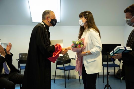 Na današnjoj svečanosti želim posebno istaknuti upravo to: da kroz ovo vrijeme pandemije kao i kroz ovih petnaest godina Sveučilište ne bi moglo doći do ove razine razvoja da nije bilo tolikog zalaganja i ljubavi prema Sveučilištu svih naših nastavnika i djelatnika, od porte, tehničke, financijske službe, posebice Studentske i Pravne službe, tajnica odjela, našega Ureda za odnose s javnošću, Sveučilišne informatičke službe, zalaganja svih 168 zaposlenika. Hvala vam od srca na vašem nesebičnom služenju, radu i zalaganju.”- rekao je rektor Tanjić.