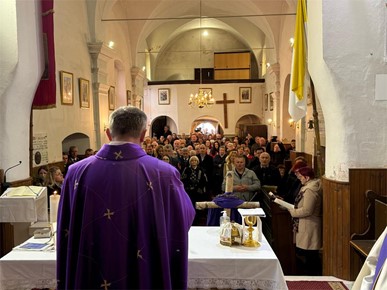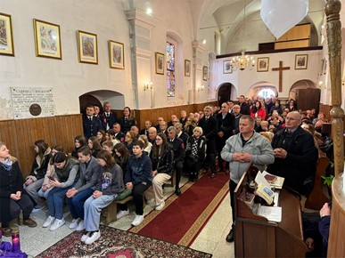 U prigodnoj homiliji vlč. Luketić osvrćući se na liturgijska čitanja povezuje tematiku s kardinalom Kuharićem: