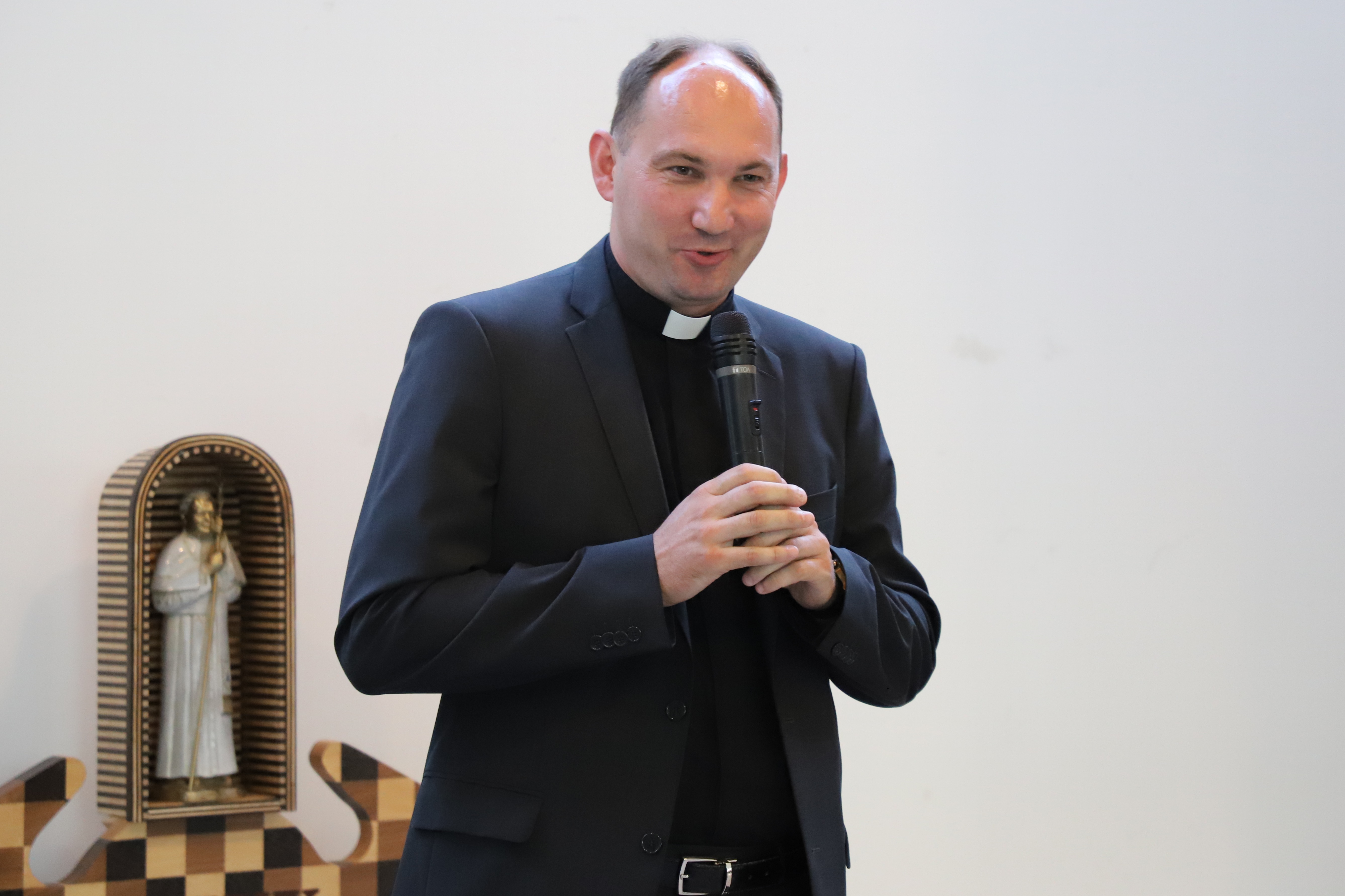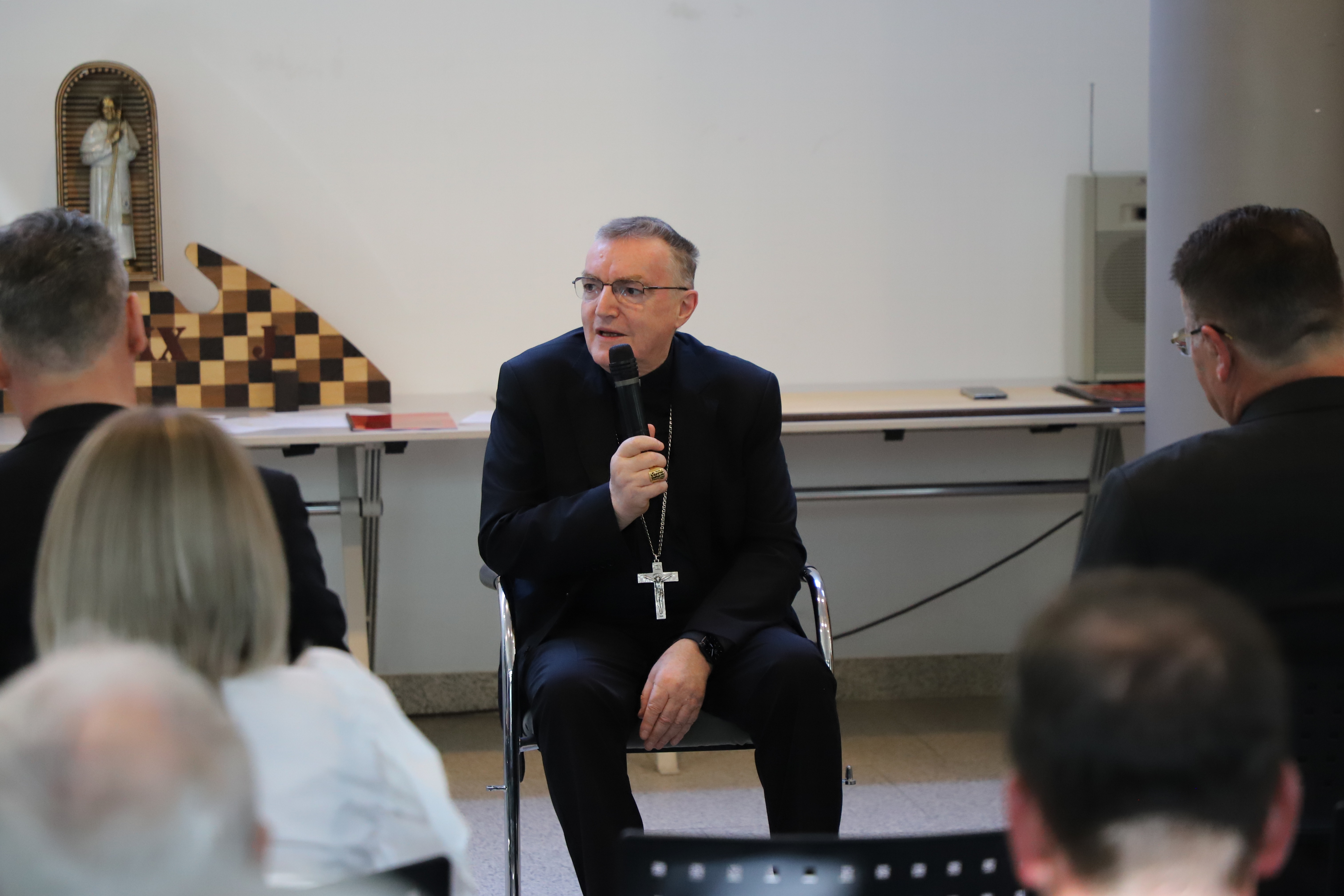 U svom obraćanju prisjetio se djelovanja doma, ali i samih začetaka njegove izgradnje. Naime, 1998. godine, zbog skučenosti i neadekvatnosti prostora na Kaptolu 28, gdje se nalazio Dom za nemoćne svećenike, javlja se zamisao o gradnji novog doma. Odluka o gradnji Svećeničkog doma sv. Josipa donesena je na konstituirajućoj sjednici Ekonomskog vijeća Zagrebačke nadbiskupije u listopadu 1998. godine, a Odbor za izgradnju svećeničkog doma imenovao je nadbiskup Josip Bozanić u lipnju 1999. godine. Novoizgrađeni dom blagoslovljen je 22. ožujka 2004. godine, a 4. srpnja iste godine iz starog u novi dom se preselilo 27 svećenika.