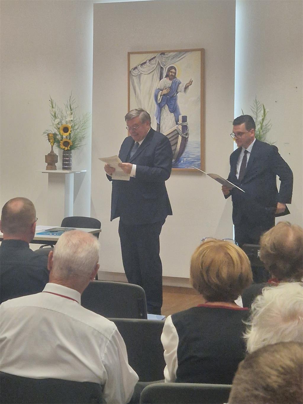Program obilježavanja započeo je prije mise predavanjem Gorana Beusa Richembergha, autora dokumentarne izložbe o nastanku i razvoju njemačke etničke zajednice u Hrvatskoj kroz povijest te o sudbini koju je doživljavala u 20. stoljeću. Izložbu je otvorio prof. dr. sc. Pascal Hector, veleposlanik Savezne Republike Njemačke u Hrvatskoj, a riječi pozdrava uputio je i dr. Ivan Rittig, predsjednik Zajednice Nijemaca u Hrvatskoj.