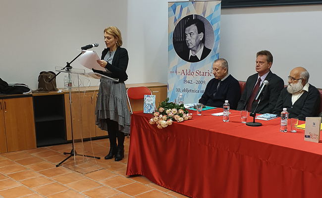 Uslijedio je prigodni program u kojem su sudjelovali: prof. dr. sc. Stjepan Kušar, dr. sc. Stjepan Brebrić, prof. Mirko Ivanjek, dr. sc. Augustin Janeković i g. Tomislav Filić. Profesor Aldo Starić bio je prije svega izniman, dobar čovjek, iskren i dubok vjernik te vrstan teolog i profesor. Svojim studentima, suradnicima, redovnicama, ali svima s kojima je dolazio u susret, darivao je iz bogate riznice svojega znanja, ali još i više iz svoje ljudske i kršćanske duhovnosti. Prozvali su ga „teologom izgovorene riječi“. Sve je svoje vrijeme utrošio u izdavanje tuđih tekstova, do za svoje vrijedne tekstove uglavnom nije izdvojio vremena. Za svoga života nije objavio niti jednu svoju knjigu, ali je itekako snažno utjecao na pisanu teološku riječ u Hrvatskoj. Kršćanska sadašnjost objavom knjige „Kršćanska vjera. Mali biblijski uvod“, koja je predstavljena na obilježavanju obljetnice njegove smrti, donekle nastoji popuniti tu prazninu i ostaviti u nasljeđe nešto od vrijednoga opusa profesorovih radova i predavanja.