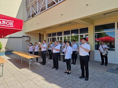 Druženje se nastavilo na prostoru ispred škole uz sviranje Gradskog puhačkog orkestra Zabok, pod vodstvom maestra profesora Marka Bobičaneca. Grad Zabok je već po tradiciji počastio sve vjernike i građane prigodnim domjenkom.