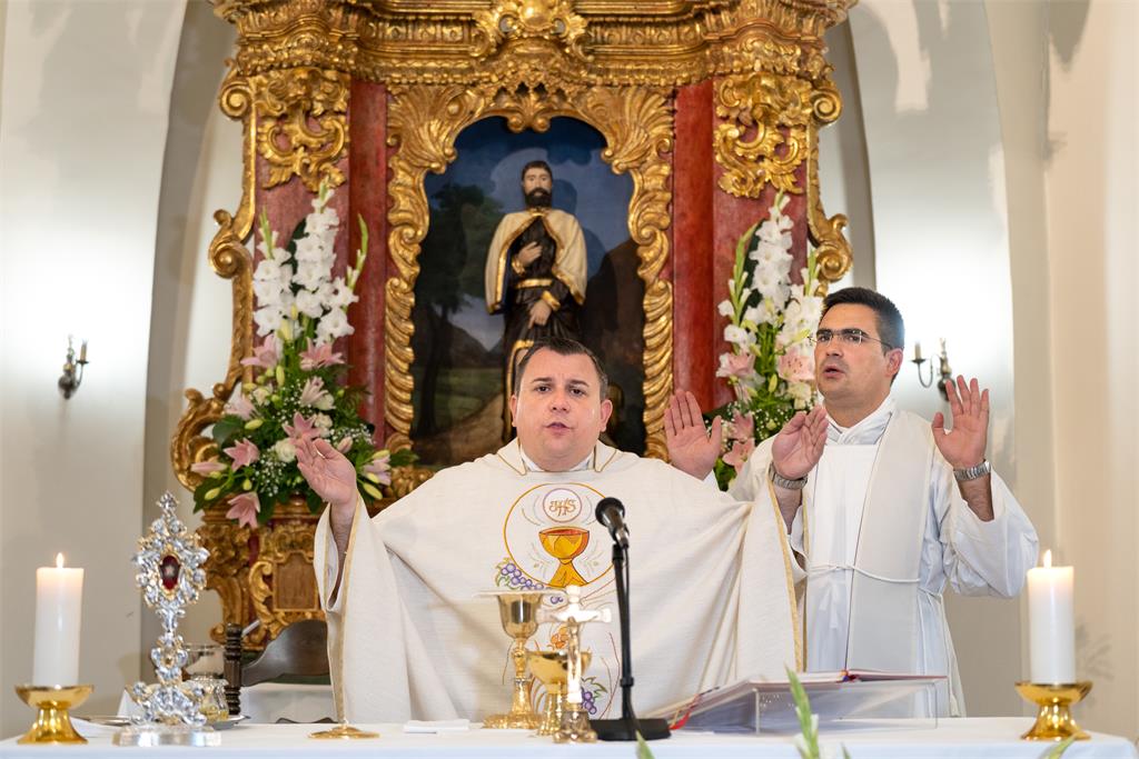 Prijepodnevne blagdanske svete mise predvodili su svećenici župe svetoga Blaža, preč. Borna Puškarić i vlč. Anđelko Katanec, a središnje misno slavlje u 18 sati predvodio je preč. Matija Pavlaković, rektor Međubiskupijskog sjemeništa u Zagrebu. On je predstavio svetog Roka kao časnog čovjeka koji je vršio evanđeoska djela milosrđa i zaslužio pohvalu koja se u biblijskim čitanjima odaje pravedniku Tobiji.