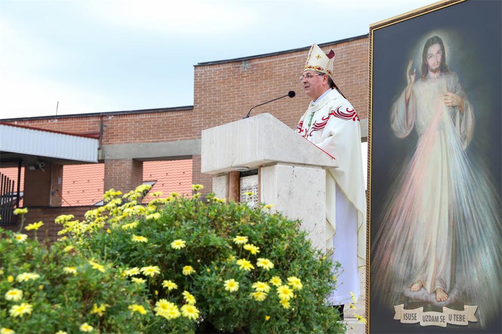 „Kakve li raskoši Radosne vijesti! Kao da se rastvorila slika Milosrdnoga Isusa koji otvara svoje Srce i zrakama dodiruje naš vid i sluh, naše slabosti i tjeskobe, naše nakane i prošnje u traženju punine vječnosti.“ Tim je riječima biskup Šaško započeo homiliju oslanjajući se na navještaj Božje riječi, koji je netom odjekivao prostranom Stepinčevom crkvom na otvorenom. U samo nekoliko rečenica proroka Izaije (usp. Iz 52, 7-10), rekao je biskup, stala je sva ljupkost, ljepota, radost, mir, sreća, utjeha i spasenje; Psalam (Ps 96) je prepun pjesme dok je Poslanica Efežanima poput simfonije jedinstva s prepoznatljivom melodijom ljubavi u Crkvi, odsvirana i otpjevana „raznolikošću Duha, dok je u pozadini naglašen ritam, poput staccata, ritam zajedništva i susreta u jedinstvu Duha: jedno Tijelo, jedan Duh, jedna nada, jedan Gospodin, jedna vjera, jedan krst, jedan Bog i Otac. Nakon toga, kao da sama od sebe poteče riječ: jedno milosrđe!“ Poput dobroga Oca, Isus se nakon svoje smrti na križu, vraća onima koji su ga napustili i vratili se svojim životima, svojim „napornim noćima, mrežama, razočaranjima i nadama“, nastavio je biskup.