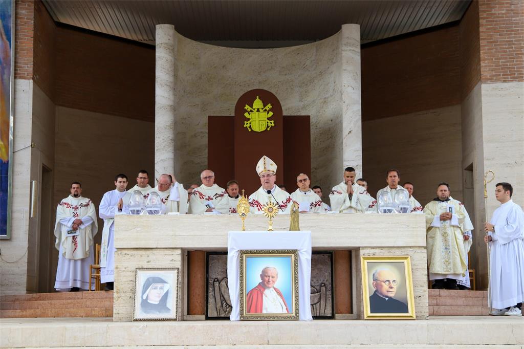 Svečano euharistijsko slavlje predvodio je zagrebački pomoćni biskup Ivan Šaško s još 34 svećenika. U uvodu mons. Šaško prenio je brojnim hodočasnicima, a okupilo ih se oko četiri tisuće iz cijele Hrvatske, blagoslov zagrebačkog nadbiskupa kardinala Josipa Bozanića, izražavajući njegovo „molitveno zajedništvo i molbu da danas molimo za njega i njegovu službu“. Uslijedio je pozdrav i posebnoj delegaciji iz Poljske – glasnogovornici Svetišta Božjega milosrđa u Krakovu-Łagiewniki Małgorzati Pabis i o. Józefu Kuc, mladom svećeniku koji djeluje u Ukrajini. Oni su svojom prisutnošću pokazali znak blizine i povezanosti štovatelja Božjega milosrđa cijeloga svijeta, koji su se kroz proteklu godinu pripravljali za obnovu Posvete prigodom 20. obljetnice prve Posvete koju je 17. kolovoza 2002. učinio papa Ivan Pavao II. u krakovskom svetištu. Biskup Šaško istaknuo je i lijepu podudarnost da je susret pao na spomendan Ivana Pavla II., jer je kao čovjek i Papa bio duboko urezan u povijest naše Crkve i naroda kao prijatelj i pratitelj.