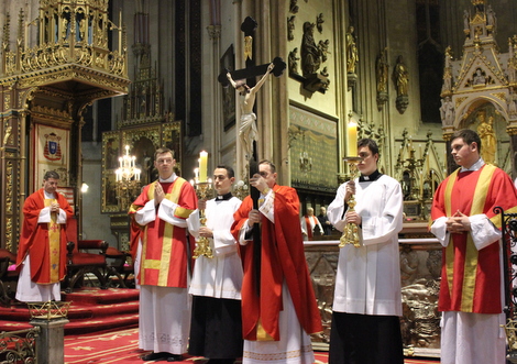 Zagrebački nadbiskup kardinal Josip Bozanić predvodio je na Veliki petak u zajedništvu s pomoćnim biskupima zagrebačkim mons. Valentinom Pozaićem, mons. Ivanom Šaškom i mons. Mijom Gorskim, okupljenim svećenicima i vjernicima liturgijske obrede Velikoga petka u zagrebačkoj prvostolnici. Homiliju je izrekao pomoćni biskup zagrebački mons. Mijo Gorski.