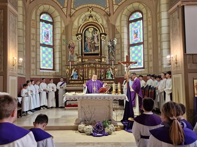Vrhunac susreta bilo je misno slavlje u župnoj crkvi Navještenja BDM. Misno slavlje predvodio je preč. Matija Pavlaković u koncelebraciji s župnikom domaćinom i dekanom preč. Norbertom Ivanom Koprivcem. Đakonsku službu za vrijeme misnog slavlja vršili su vlč. Filip Pranjić i trajni đakon Đuro Matić, a liturgijsko pjevanje predvodili su župni animatori.