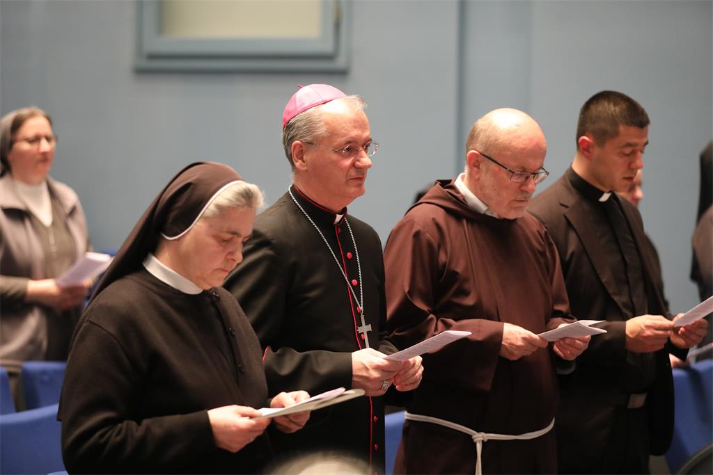 Okupljenima se obratio fra Jure Šarčević, OFMCap., povjerenik za posvećeni život i družbe apostolskog života. Zahvalio je svima na dolasku, kazavši kako je uvijek dobro biti uz svoga pastira. "To je garancija da nećemo odlutati, niti se udaljiti od Crkve i od onih koji je predvode kao nasljednici apostola. Pripadnost svojoj zajednici ili Crkvi neće dopustiti da nas najamnik ugrozi."