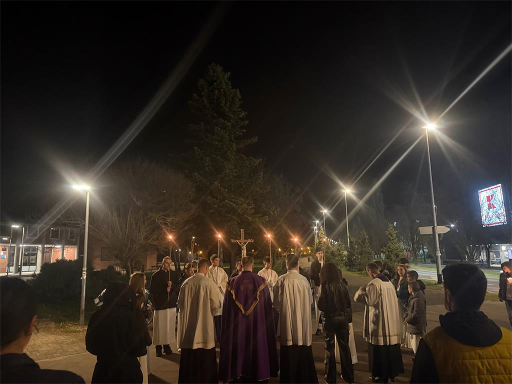 Župljani su, predvođeni župnikom vlč. Danijelom Hačkom i župnim vikarom vlč. Petrom Tisajem, od stare župne crkve preko ulica Sesveta do pastoralnog centra postajama razmatrali Isusovu muku i smrt. Hodajući i tako prateći Gospodinov križ ulicama svojih domova, prisjetili su se Isusovog kalvarijskog puta i žrtve koju je podnio za cijeli svijet.