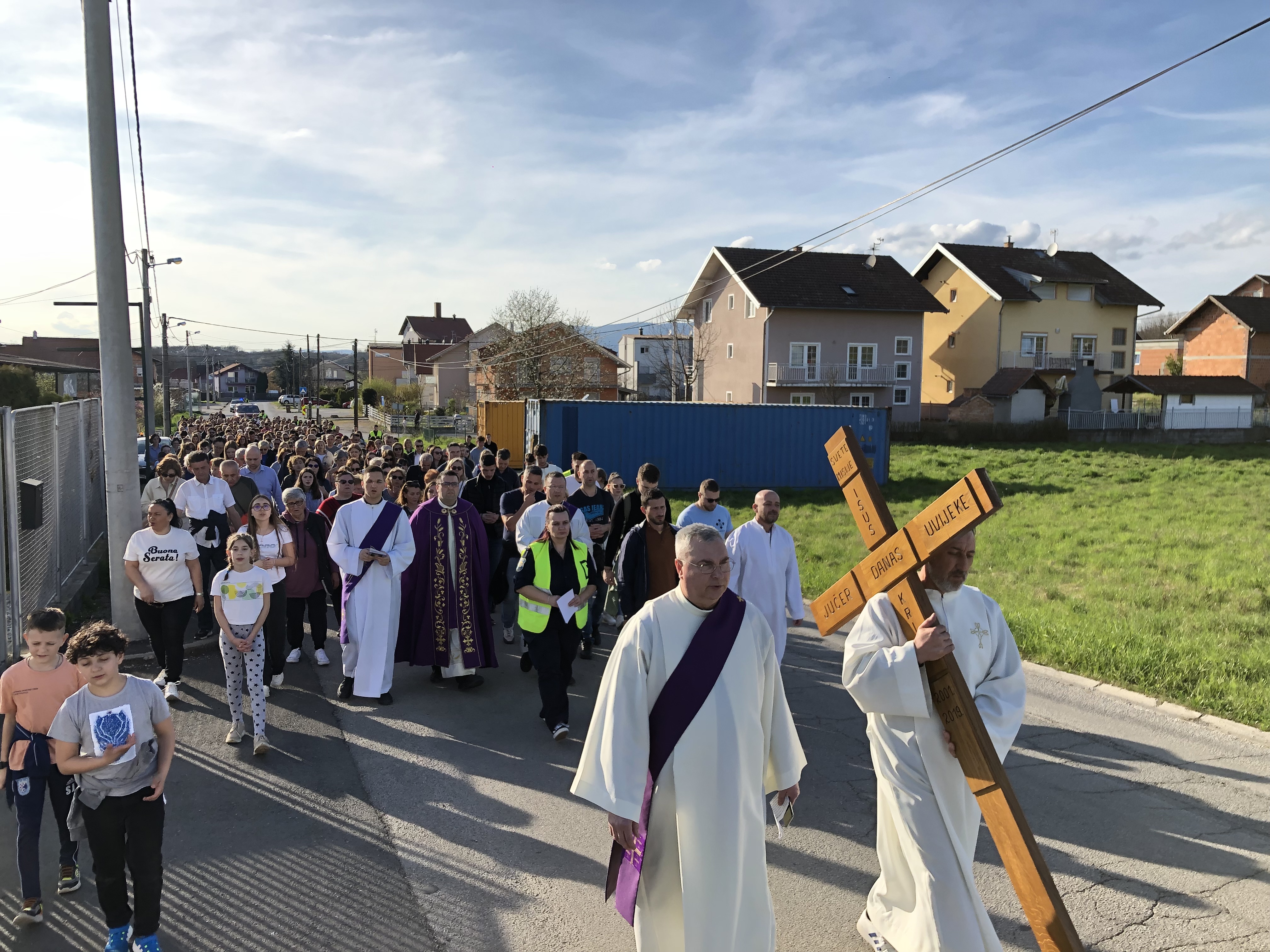 Križni put predvodio je župnik moderator don Đuliano Trdić, a pratili su ga đakoni Marko Šimundić, Mario Šarić i trajni đakon Miljenko Bošnjak. U pobožnosti križnog puta sudjelovalo je petstotinjak župljana.