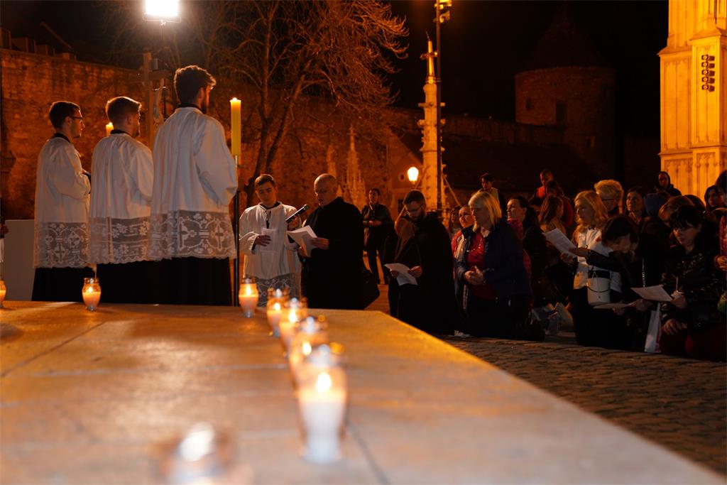 Na samom kraju križnog puta mons. Zlatko Koren, katedralni župnik, dočekao je okupljene vjernike te izmolio posvetu Bezgrješnom Srcu Marijinu za čitavo čovječanstvo, a napose Rusiju i Ukrajinu.