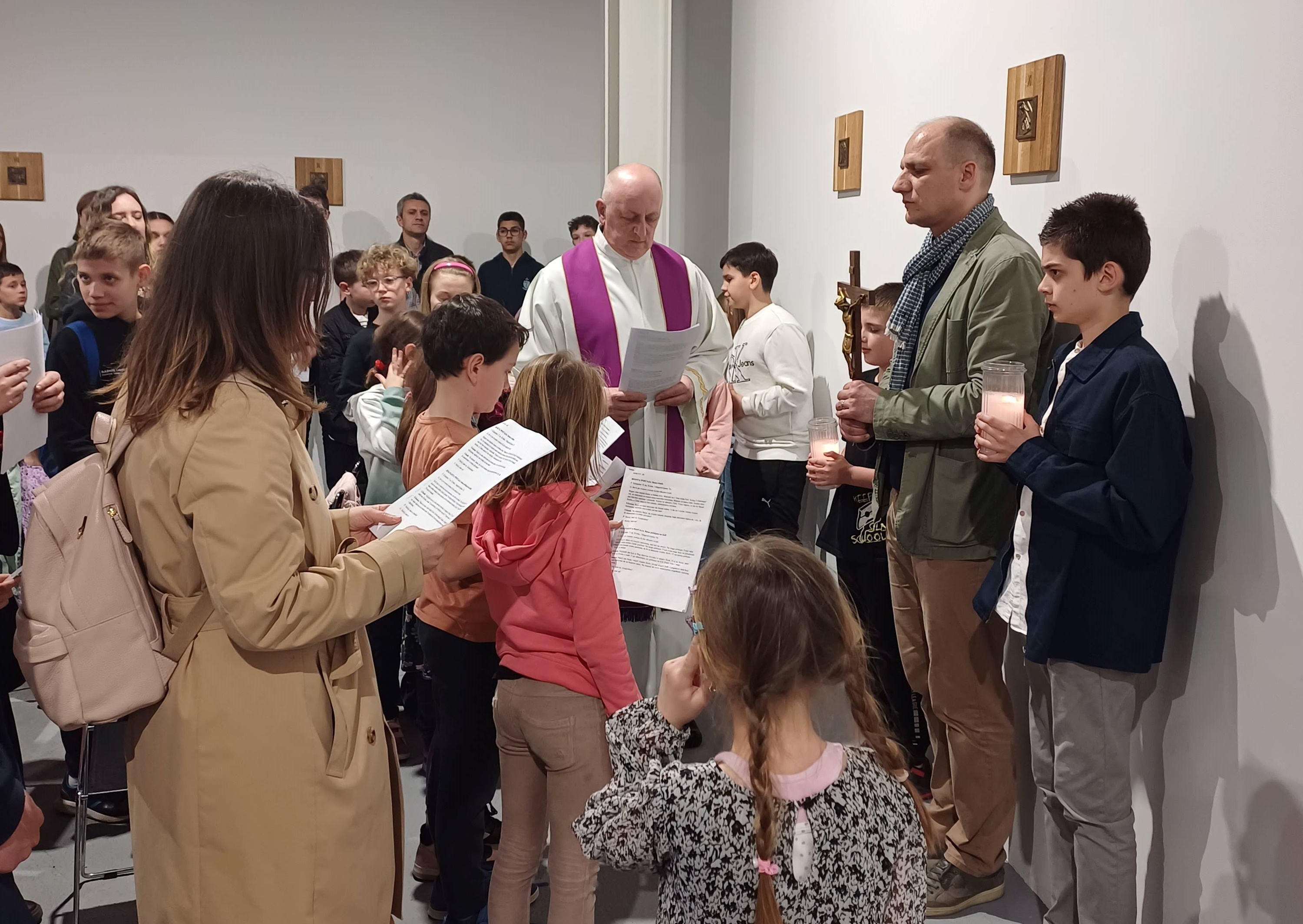 Više od 250 učenika, roditelja i djelatnika katoličkih osnovnih škola (Prva katolička osnovna škola u Gradu Zagrebu, Osnovna škola ''Dominik Savio'', OŠ Ružičnjak i OŠ Lotrščak) okupilo se na križnom putu, a druženje su nastavili u Nadbiskupijskom pastoralnom institutu, gdje su pogledali humanitarnu izložbu radova djece iz katoličkih vrtića na području Zagrebačke nadbiskupije.