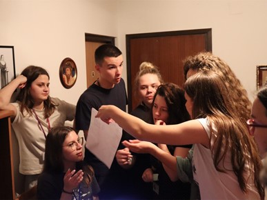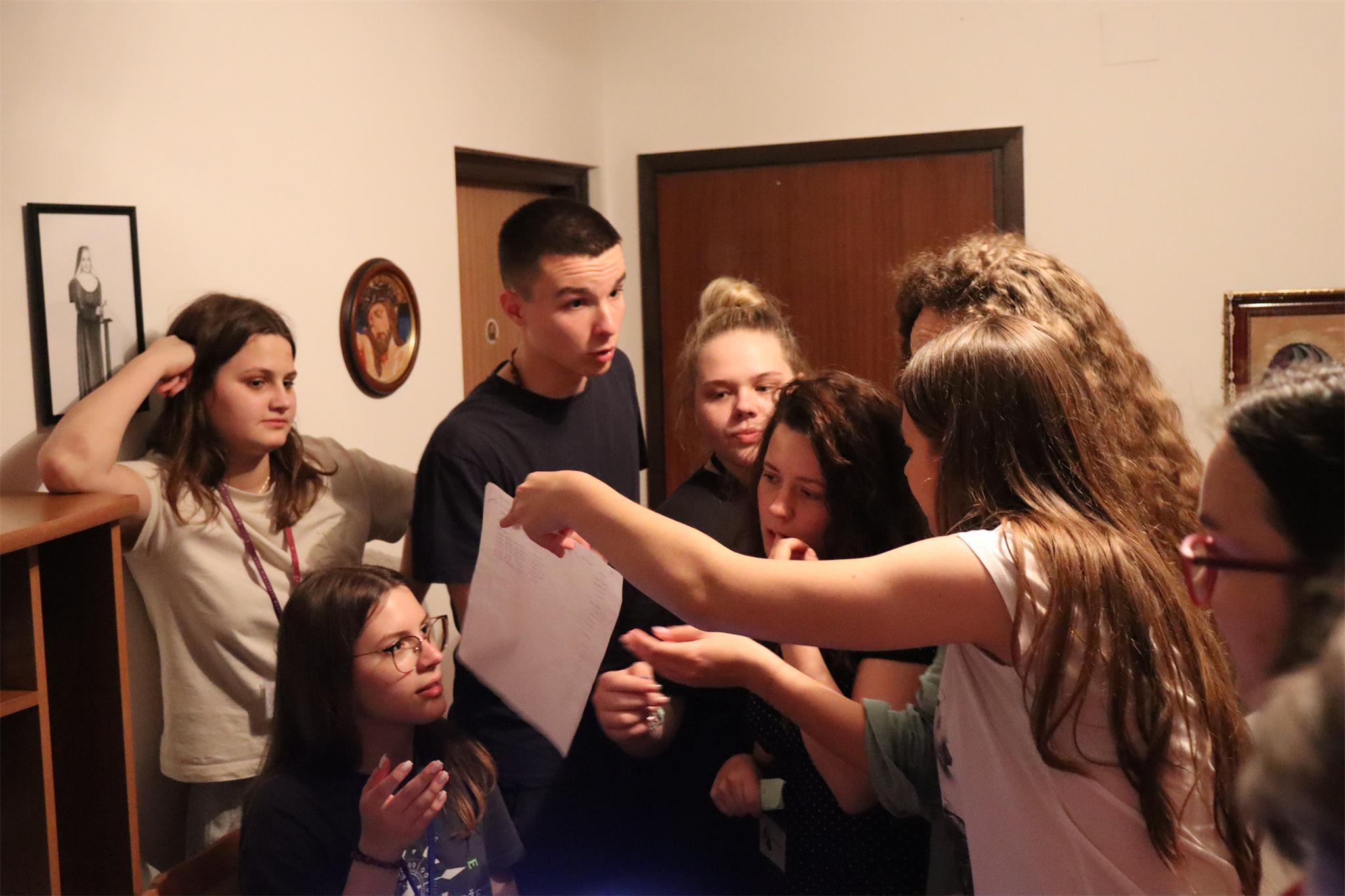 Večernji program nastavljen je veselom večeri koja je osmišljena prema društvenoj igri Cluedo. Subota je završila duhovskim bdjenjem.