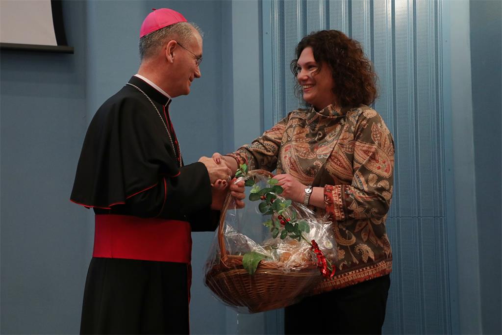 Ravnateljica Vragotuk zahvalila je na pozivu i istaknula kako odgoj za vjeru i odgoj u vjeri u suvremenom obrazovanju "pomaže djeci razvijati unutarnju stabilnost, osjećaj smisla, odgovornost prema drugima i prema zajednici. U tom procesu neizostavna je uloga Crkve koja svojim djelovanjem i prisutnošću trajno podsjeća na vrijednosti koje nadilaze prolaznost i naše svakodnevne izazove." Zahvalila je Nadbiskupu na razumijevanju i otvorenosti prema dijalogu, kulturi i odgoju.