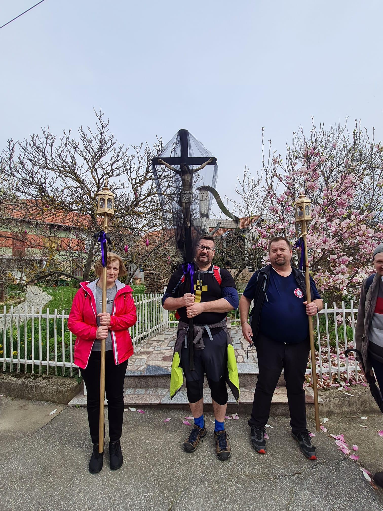 Križnom putu prethodilo je euharistijsko slavlje koje je predvodio župnik vlč. Branimir Budinski, a koncelebrirao je vlč. Željko Savić. Istaknuo je kako moramo biti radosni što smo okupljeni u Gospodnjem Domu te s radošću krenuti dalje putem križa kojeg svatko od nas nosi. Pohvalio je inicijativu župljana da se pokrene križni put po Župi te izrazio želju da to ne bude samo ove godine nego da postane dio običaja župe.