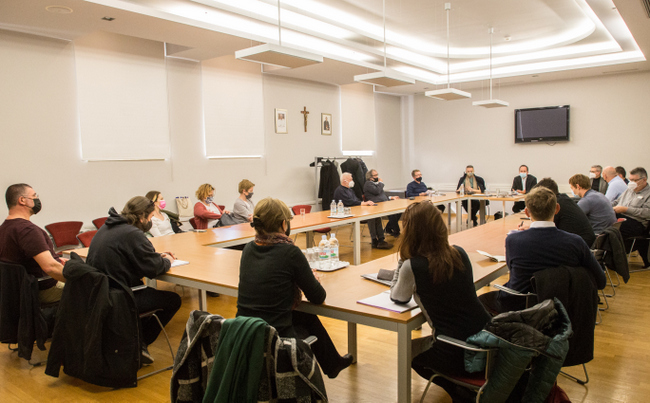 U ponedjeljak, 8. ožujka 2021. godine u Nadbiskupijskom pastoralnom institutu u Zagrebu održan je radni sastanak stručnih timova za sanaciju i ojačanje konstrukcije te konzervatorsko-restauratorske radove kompleksa Nadbiskupskog dvora u organizaciji Odbora za obnovu kompleksa Dvora na čelu s preč. Ivicom Budinšćakom, dopredsjednikom Odbora, uz sudjelovanje članova Odbora prof. mr. art. Suzane Damiani, akad. slikarice, prof.dr.sc. Josipa Atalića, dipl. ing. građ. i savjetnika dr.sc. Dragana Damjanovića, povj. umjetnosti.