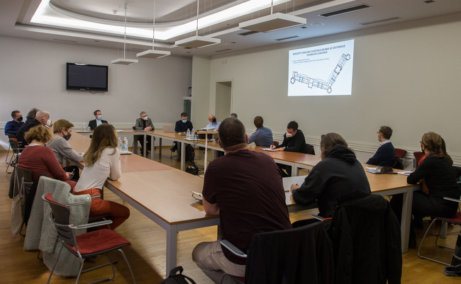 Predstavljanje rješenja sanacije i ojačanja konstrukcije kompleksa Nadbiskupskog dvora prezentirali su projektant suradnik za konstrukciju Ivan Kukina, mag. ing. aedif. uz podršku revidenta za konstrukciju prof. dr. sc. Borisa Trogrlića, dipl. ing. građ. te uz prisustvo voditelja projekta Borisa Blaževića, dipl. ing. građ., glavnog projektanta Nenada Tepeša, dipl. ing. građ. te arhitekata Ante Matića, ovl. arh. i Daria Špoljarića, mag. ing. arh.