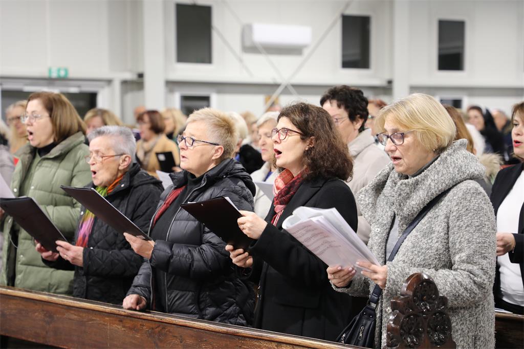 razbojničku špilju, kako kaže Evanđelje. Sve što nije u službi molitve ne pripada u kuću Božju", podsjetio je preč. Martinjak koji je homiliju zaključio riječima pape Benedikta XVI.: "Zajedničko pjevanje, u zboru, i svih zborova zajedno, zahtijeva pozornost prema drugome, pozornost prema skladatelju, pozornost prema maestru, dirigentu, pozornost prema ovoj ukupnosti koju nazivamo glazbom i kulturom, pa je na taj način zborno pjevanje odgoj za život, odgoj za mir, zajednički put."