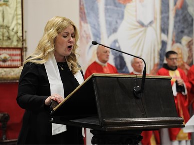 U homiliji preč. Martinjak podsjetio je na temeljne zadaće crkvenog zbora i pjevanja u liturgiji. "Pjevanje i glazba u liturgiji nisu samo ukrasni elementi, nisu tek puka "koreografija" koja bi liturgiji dala živosti, nego vrše mnogostruku ulogu: objaviteljsku, duhovnu, kristološku i eklezijalnu. Sv. Pavao ne naglašava bez razloga da se "poučavanje i urazumljivanje" treba činiti pjevanjem psalama, hvalospjeva, duhovnih pjesama. Naše pjevanje Bogu poprima obilježja hvaljenja, zahvaljivanja, klicanja, moljenja, zazivanja, klanjanja. Zbor je najuže povezan sa zajednicom vjernika. Zbor potiče zajednicu na pjevanje, ali i na slušanje nekog zborskog izvođenja. Već su stari kršćanski oci naglašavali važnost kršćanskog pjevanja."