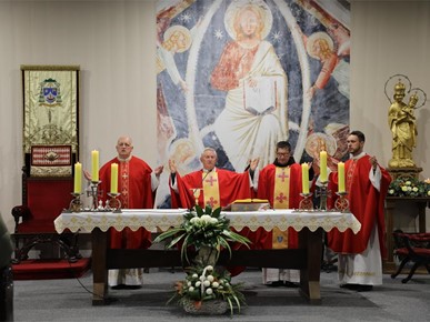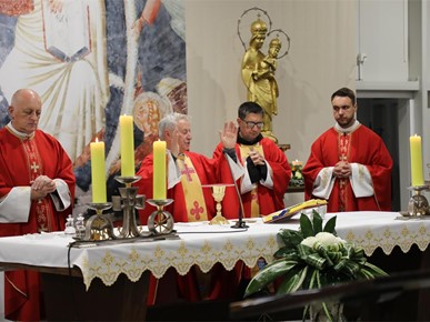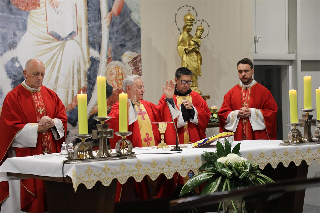 regens chori zagrebačke katedrale preč. Miroslav Martinjak, mr. art., u koncelebraciji s rektorom zagrebačke katedrale mons. Zlatkom Korenom, župnikom Župe sv. Ante Padovanskog u Bugojnom te župnim vikarom u župama Tijela Kristova u Sopotu i sv. Mateja apostola i evanđelista u Dugavama vlč. Petrom Belinom.