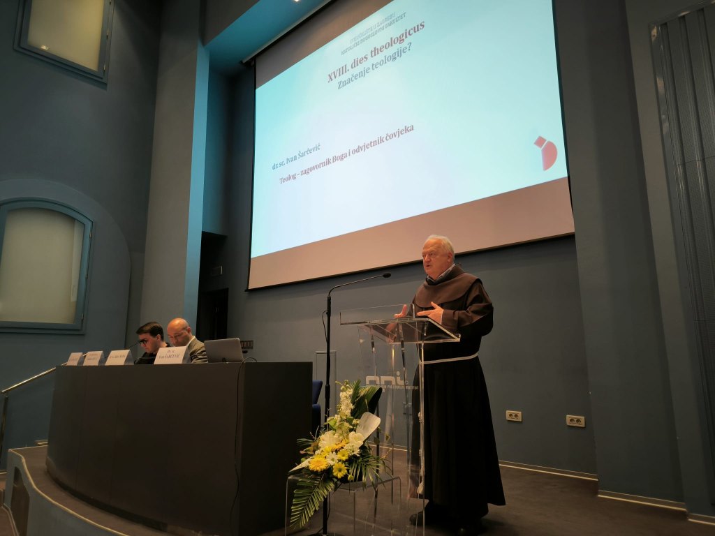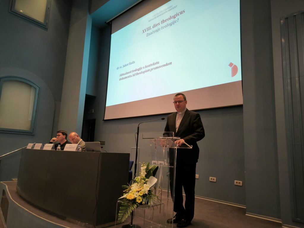 Zašto teologija? naslanja se na dozrijevanje tog puta kojim su hodali teolozi prije nas i teolozi danas. Dekan je istaknuo da se teologija studira sjedeći, hodajući i klečeći. Sjedeći - jer zahtijeva studiozni angažman, hodajući - jer zahtijeva biti dionikom društva i razgovor s drugima te klečeći jer zahtijeva prignuti se pred Otajstvom. Iz tog izvora trebamo teologiju koja je interdisciplinarna, životna i onu koja doprinosi napretku društva. Takvu teologiju nosi i promovira teolog vjerom zahvaćen iznutra, teolog koji je čovjek Crkve, teolog kojeg resi intelektualna stručnost i znatiželja te koji nije ravnodušan spram političkih i društvenih zbivanja.