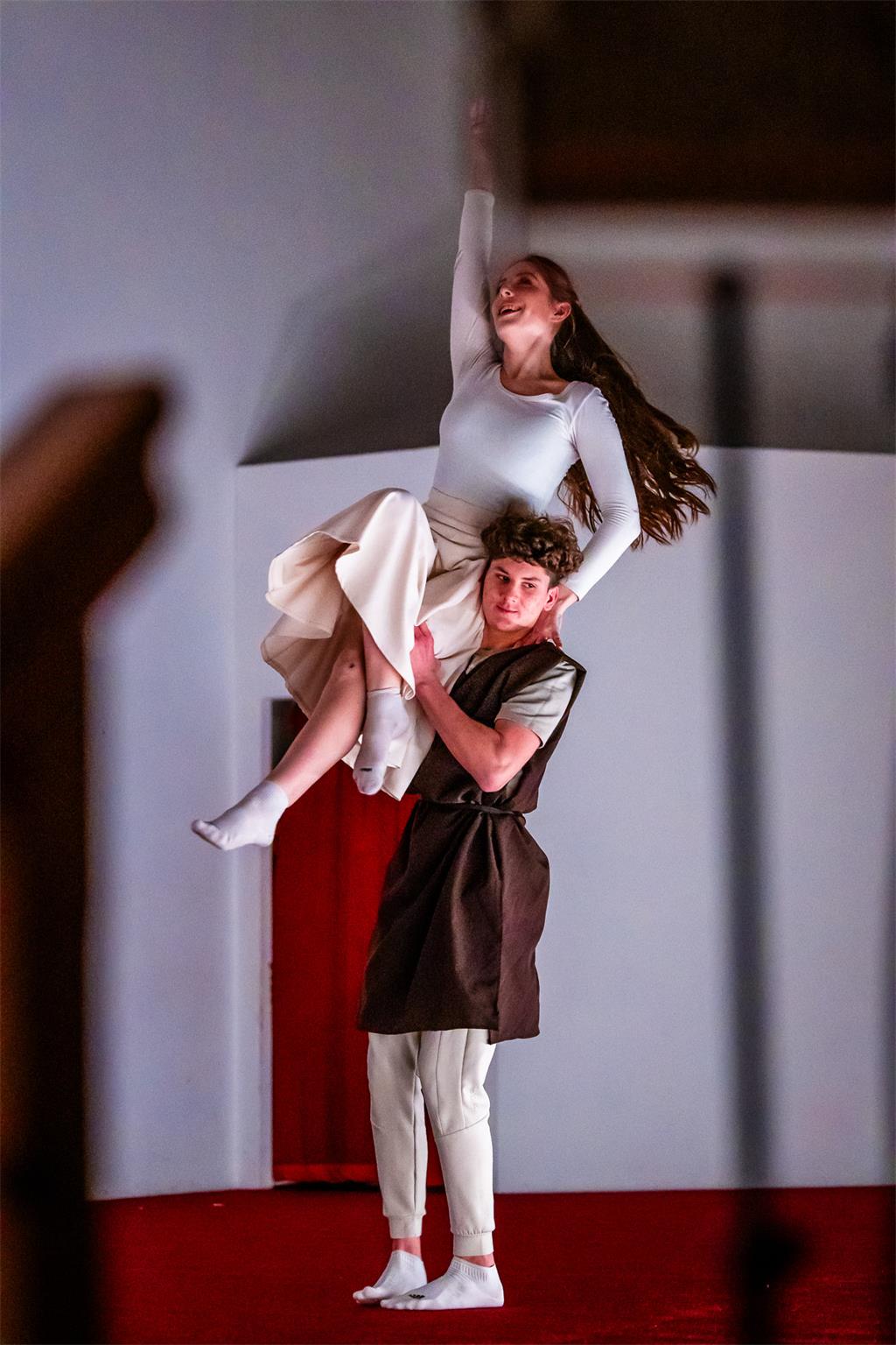Osim same glume Tara Kranjčević i Mauro Kosić plesom su prisutnoj publici prezentirali međusobnu ljubav Josipa i Marije, ali i njihovo traženje i razumijevanje volje Božje za njih dvoje koji postaju suradnici Božji u djelu spasenja. Glumci i plesači dinamičnim pokretima, uvjerljivom dikcijom, potpunim posvojenjem teme i sadržaja božićne poruke, skladnim doskočicama iz sadašnjeg vremena, ne narušavajući svetost poruke, zorno su dočarali problematiku s kojom su se susreli Josip i Marija kada ih je Bog odabrao za svoje suradnike.