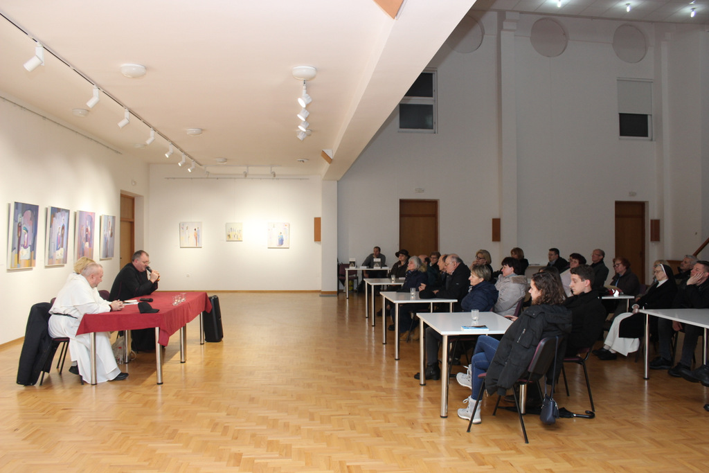 mračnog doba srednjeg vijeka, renesanse, baroka, realizma pa sve do modernizma. Zašto je došlo do toga da se u zadnjih 70 godina u kazalište, ali i umjetnost općenito, uvukla tendencija šokiranja publike, prikazivanja samo ružnih događaja i nesretnih završetaka? To je ono što se pitala te se i dalje pita prof. Nikčević. Nadalje, dotaknula se problema stvaranja kanona te izbacivanja određenih autora samo zato što nisu u skladu s vladajućim (sekularističkim) svjetonazorom. Umjetnost je preko dvije tisuće godina bila lijepa, sveta, dobra i istinita, a onda je odjednom došlo do zaokreta u negativnom smjeru. Kraj Drugog svjetskog rata trenutak je kad dolazi do neobjašnjivog rascjepa, kad se sve ono s kršćanskim predznakom briše iz povijesti književnosti. Pater Iko Mateljan nadovezao se na prof. Nikčević ističući važnost Crkve u promoviranju one istinske, dobre, lijepe i svete umjetnosti. Tom je prigodom pohvalio Nacionalno svetište svetog Josipa koje na čelu s rektorom mons. Antunom Senteom, ml. aktivno radi na upoznavanju društva s umjetničkim djelima prožetim pravim smislom i vrijednošću.