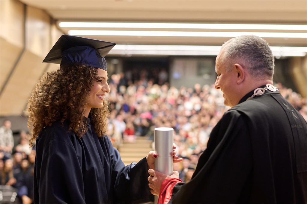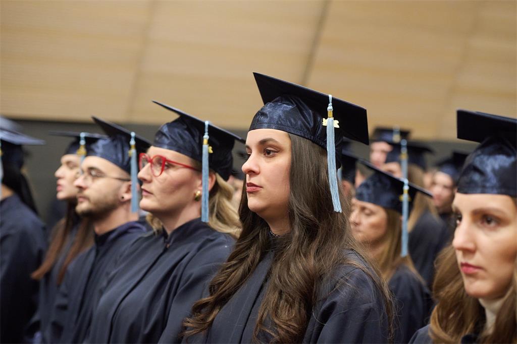 U ime nagrađenih studenata na svečanoj promociji u ime magistara sa Sveučilišnog odjela za sociologiju i Sveučilišnog odjela za sestrinstvo obratila se sveučilišna magistra sestrinstva Kristina Marović koja je izrekla riječi zahvale: „Prije svega, zahvaljujemo našim profesorima i mentorima. Hvala vam što ste nam, uz znanje, prenijeli i temeljne vrijednosti. Niste nas oblikovali samo kao stručnjake, već i kao ljude. Vaše upute i podrška vodile su nas kroz sve izazove i ohrabrivale da idemo naprijed i tako pridonesemo našim strukama i društvu. Duboku zahvalnost iskazujemo našim obiteljima koje su bile uz nas u svakom trenutku, kroz uspone i padove, uspjehe i neuspjehe. Vaša podrška i ljubav bili su oslonac i motivacija koji su nam davali snagu da ustrajemo i postignemo ono što smo danas. Bez vas, ne bismo bili ovdje. Zahvaljujemo i našim kolegama, prijateljima i svima koji su bili uz nas u razdoblju našeg studiranja. Zajedno smo dijelili teške i radosne trenutke te uspomene koje će zauvijek ostati s nama. Upravo je to zajedništvo učinilo svaki izazov lakšim“.