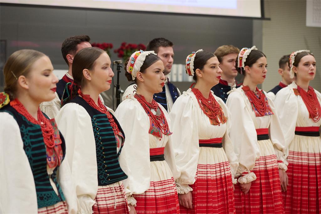 Akademski čin skladnim pjevanjem uljepšao je folkorni ansambl Ivan Goran Kovačić koji je u narodnim nošnjama, uz himne Republike Hrvatske i Gaudeamus Igitur, otpjevao i narodnu pjesmu „Dobar denek dobri ljudi“.