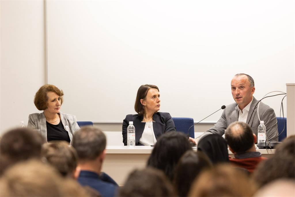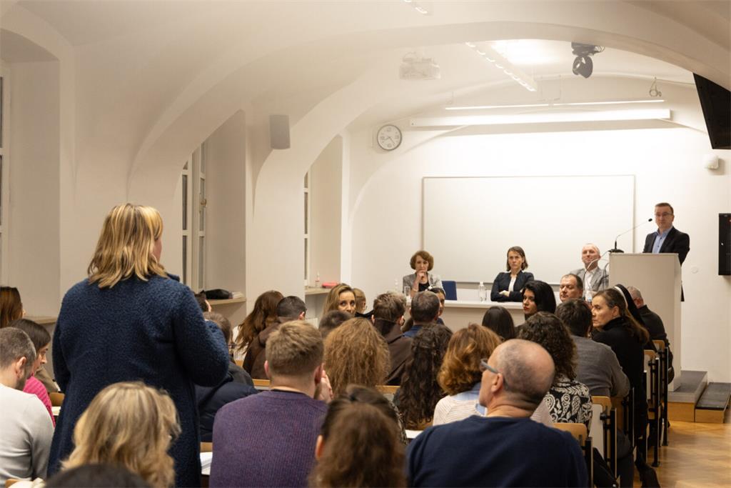 Nakon uvodnih izlaganja, uslijedio je razgovor između predavača i bivših studenata KBF-a koji su u opuštenom i zanimljivom tonu raspravljali o navedenoj temi.