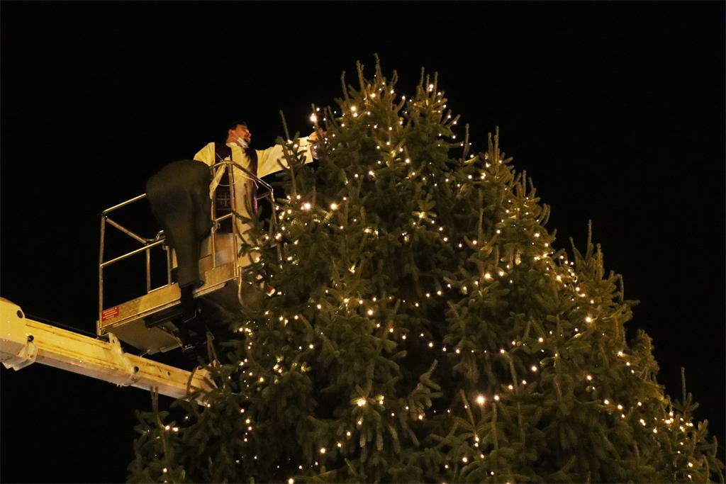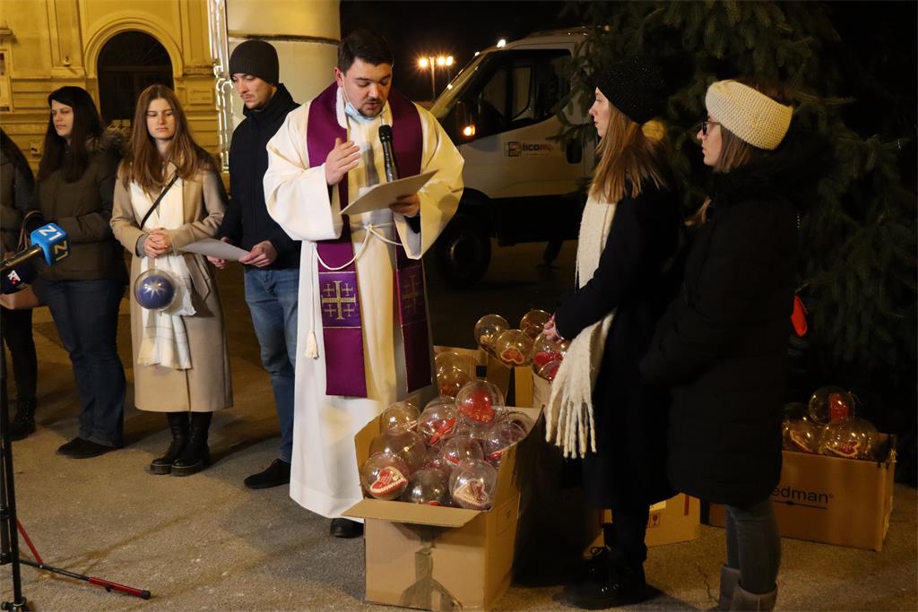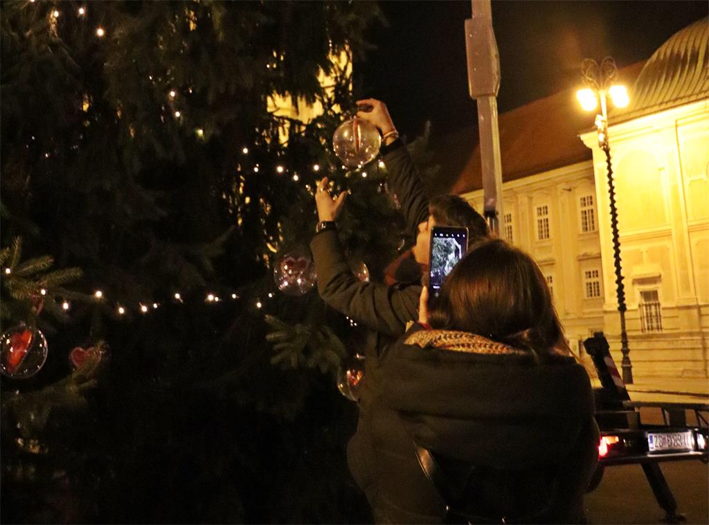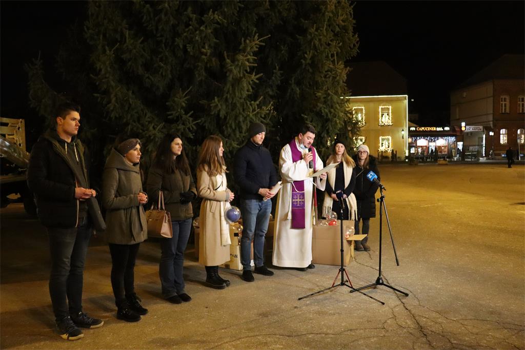 Nakon molitve i blagoslova kuglica okupljeni mladi i prisutni građani okitili su bor zajedno s vlč. Tušekom, koji je na bor stavio prvu kuglicu - onu koja nosi znakove grba zagrebačkoga nadbiskupa kardinala Josipa Bozanića.