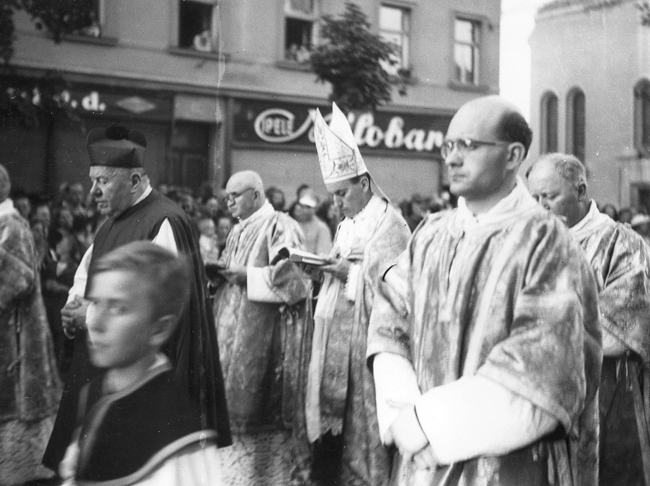 Na povratku zavjetne procesije grada Zagreba iz Marije Bistrice, ispred crkve sv. Petra u Zagrebu godine 1943.