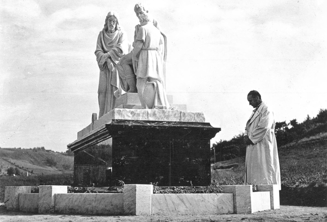 Nadbiskup pred prvom postajom Križnoga puta u Mariji Bistrici 1943.