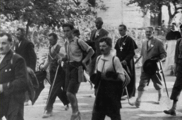 Nadbiskup Stepinac s hodočasnicima grada Zagreba na putu do Marije Bistrice