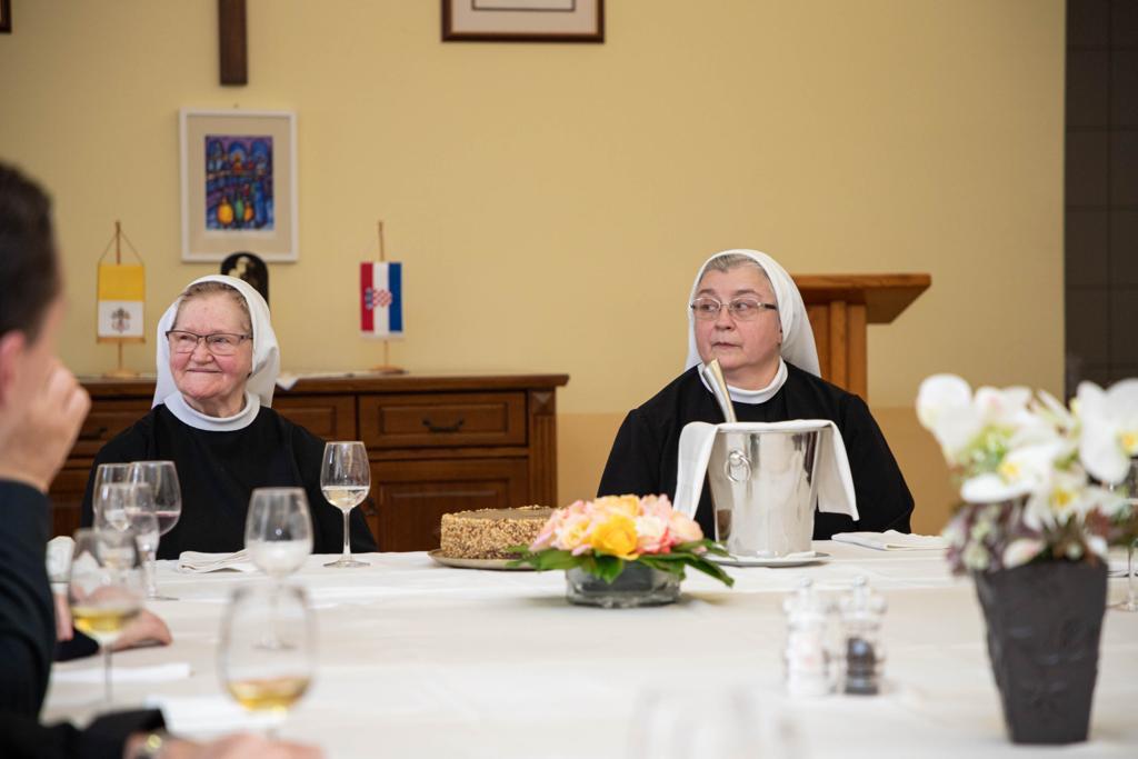 Uz ostale sustolnike na ručku su bili prisutni preč. Vlado Razum, rektor crkve Corpus Domini, dosadašnji duhovnik u Bogosloviji te preč. Jakov Rađa, ravnatelj Nadbiskupijskog pastoralnog instituta. Tijekom svečanoga ručka, preč. rektor Željko Faltak zahvalio je sestrama na njihovom vjernom i požrtvovnom radu i služenju u Bogosloviji, naglasivši kako će njihova odsutnost tek pokazati koliko su sestre uistinu bile tiha, ali važna prisutnost, samozatajno, a revno vršeći svoje poslanje.