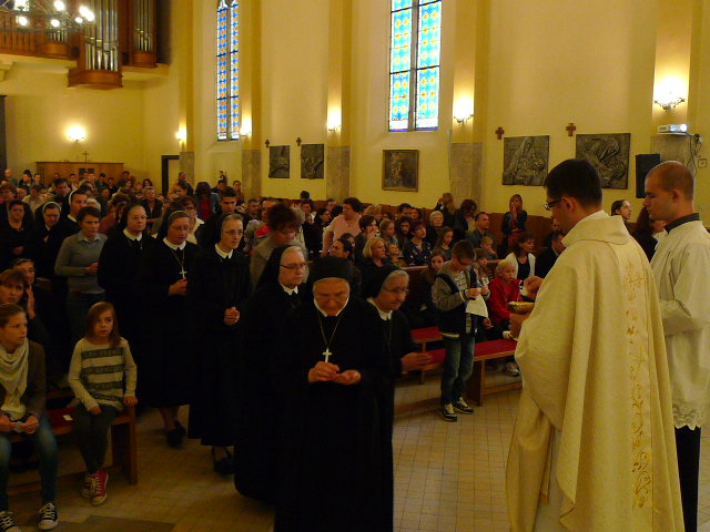 Na izričitu želju sestara Ančela, koje su tom prigodom došle iz Vrbovca, Splita i raznih dijelova Zagreba, misno slavlje u 11 sati predvodio predvodio fra Tomislav Glavnik, gvardijan Samostana Svetog Duha u Zagrebu, uz koncelebraciju domaćeg župnika vlč. Božidara Tenšeka, fra Nike Leutara voditelja Hrvatske katoličke misije Aargau te župnog vikara vlč. Marka Torbara.