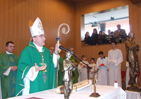 U svojoj propovijedi kardinal Josip Bozanić podsjetio je na važnost značenja praktičnog vjernika i žive vjerske zajednice koja se redovito okuplja na nedjeljnom euharistijskom slavlju. Kako je istaknuo, Crkva živi preko svojih župnih zajednica te je izrazio želju za skorom gradnje župne crkve u kojoj bi se vjernici okupljali. Kardinal Bozanić je i poručio da se članovi ove župne zajednice posebnu utječu svom blaženiku Ivanu Merzu koji je primjer življenja vjerskog života, a blizak je današnjem vremenu i prostoru.